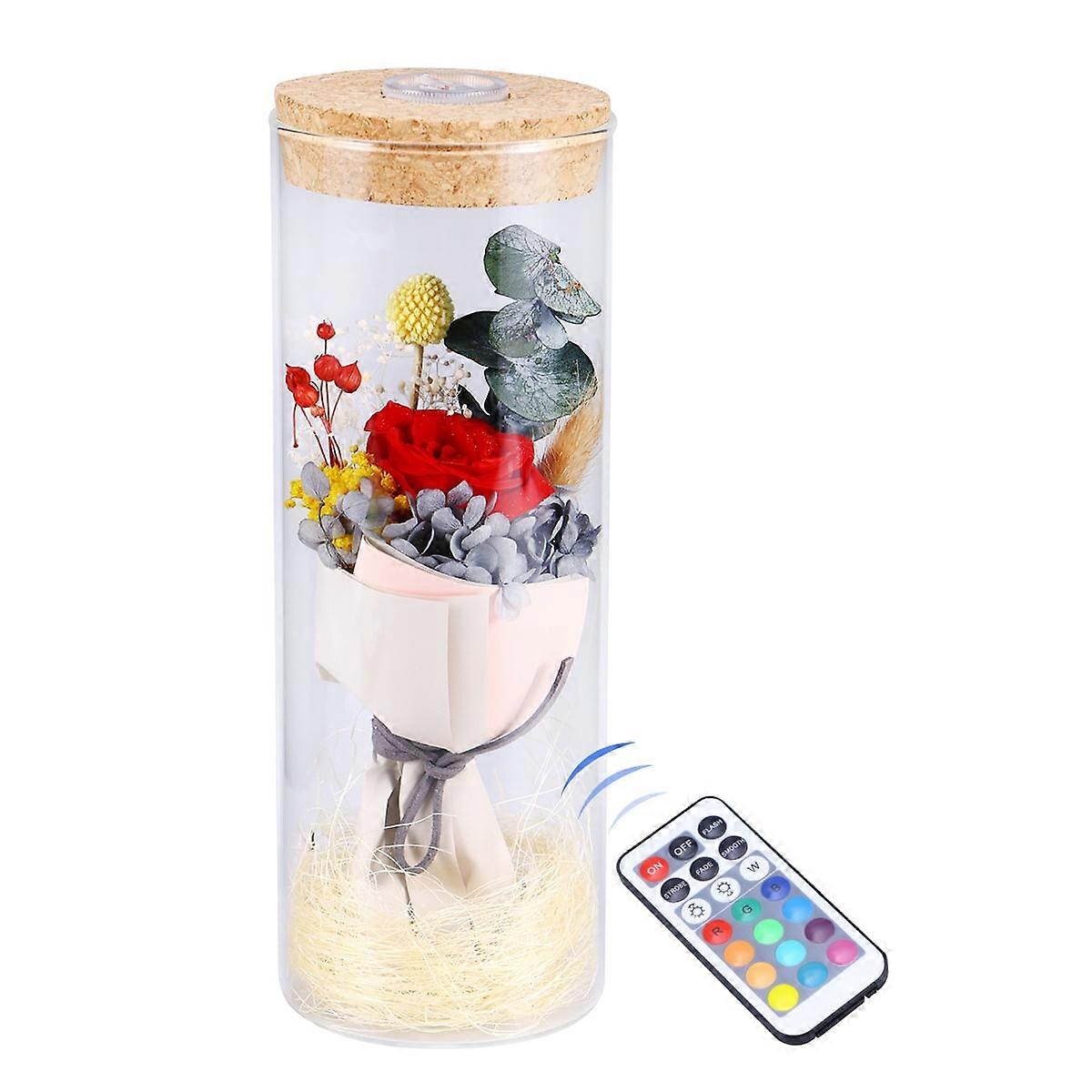 Preserved Fresh Flowers with RGB LED, Remote Control, Glass Jar - Red, Gift for Valentine's, Mother's Day, Wedding, Birthday
