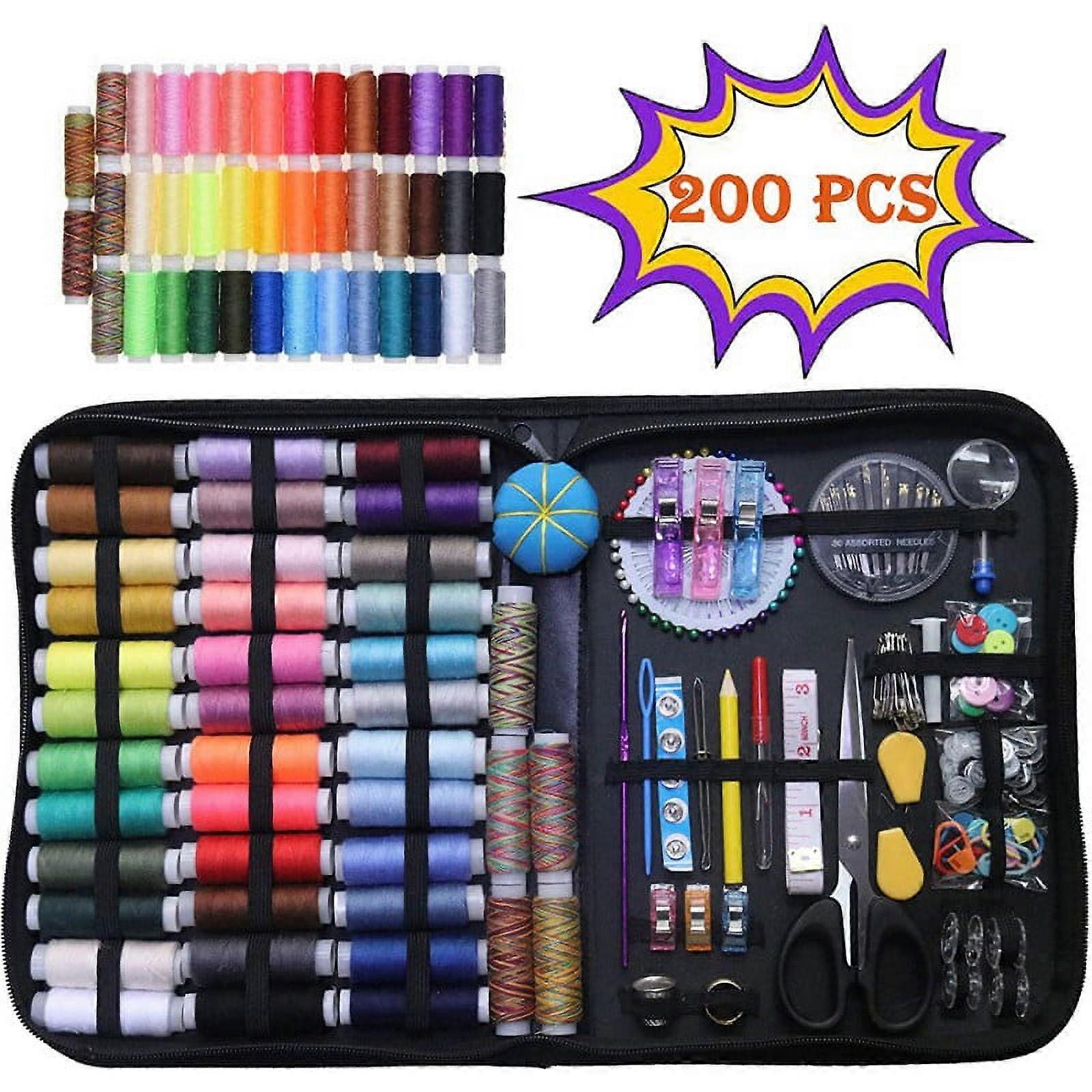 Sewing Kit for Adults & Kids - Beginner Friendly Set w/ Thread, Needles, Scissors, Thimble, Clips - Perfect for DIY, Travel
