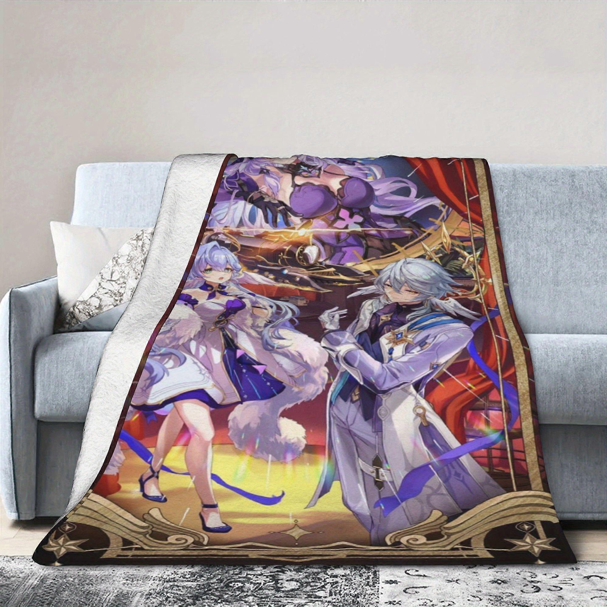 Honkai: Star Rail Anime Blanket - Soft Flannel All-Season Throw with Characters, Purple Golden Decor - Perfect Gift for -MZGAQ138