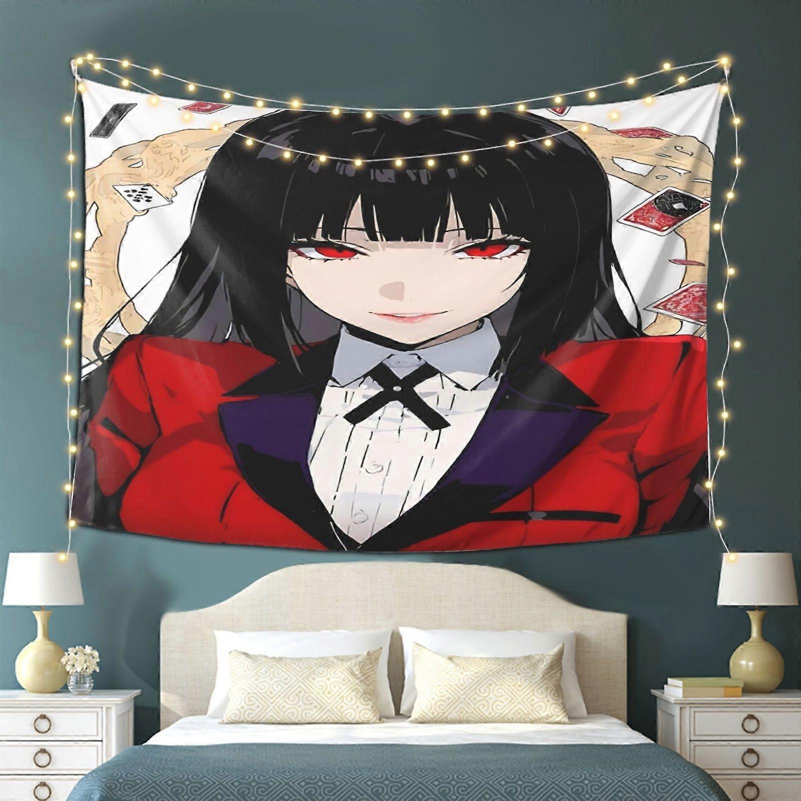 1pc Yumeko Jabami Anime Wall Tapestry - Vibrant Red & Character Design, Soft Peach Light Fabric, Horizontal Orientation,-MZGAQ197