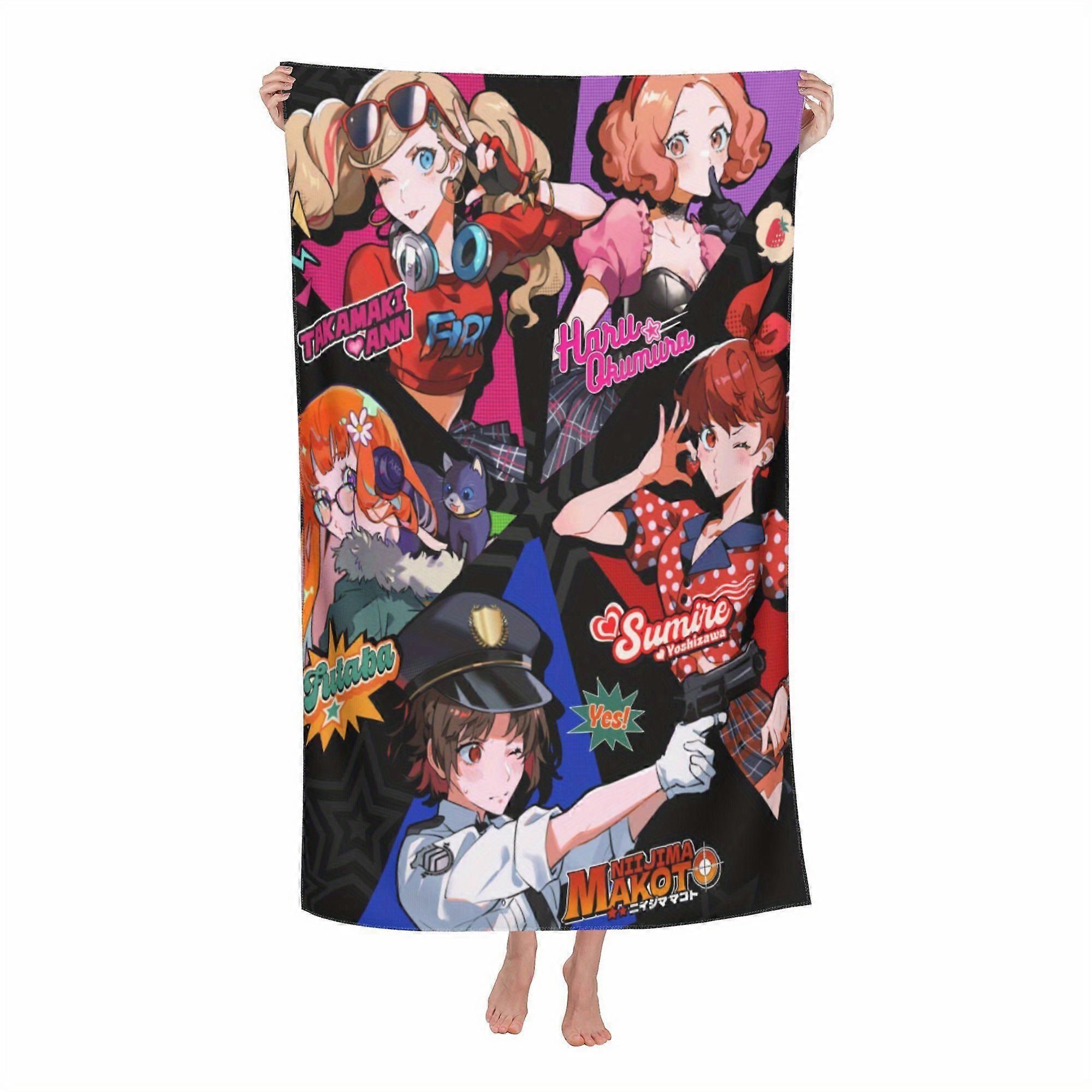 Persona 5 Themed Beach Towel - Lightweight & Soft Microfiber with Vibrant Game Character Art, Portable Square Design for-MZGAQ208