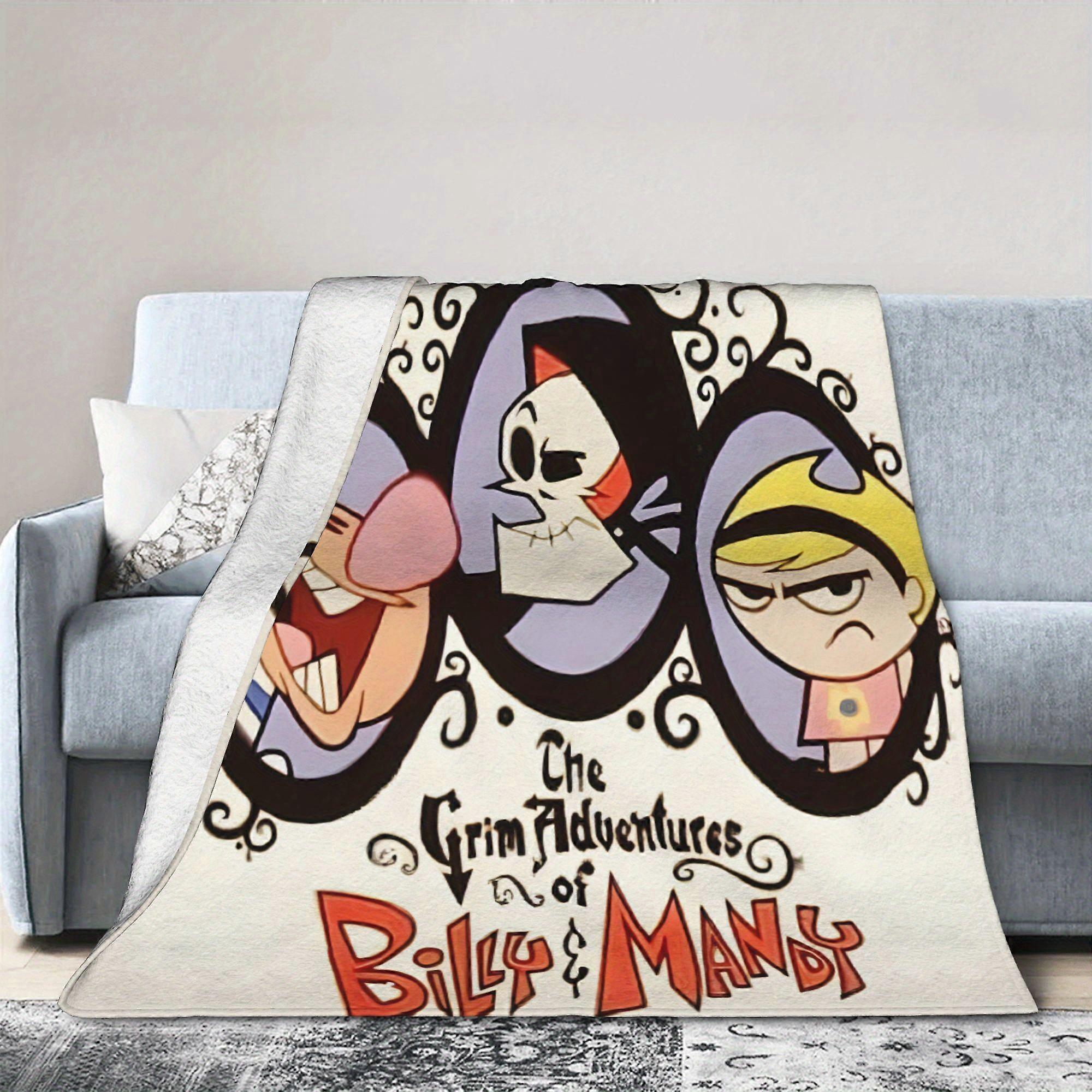 1pc The Grim Adventures of Billy & Mandy Fleece Blanket - Soft Lightweight Flannel, Vibrant Cartoon Character Design, Du-MZGAQ282