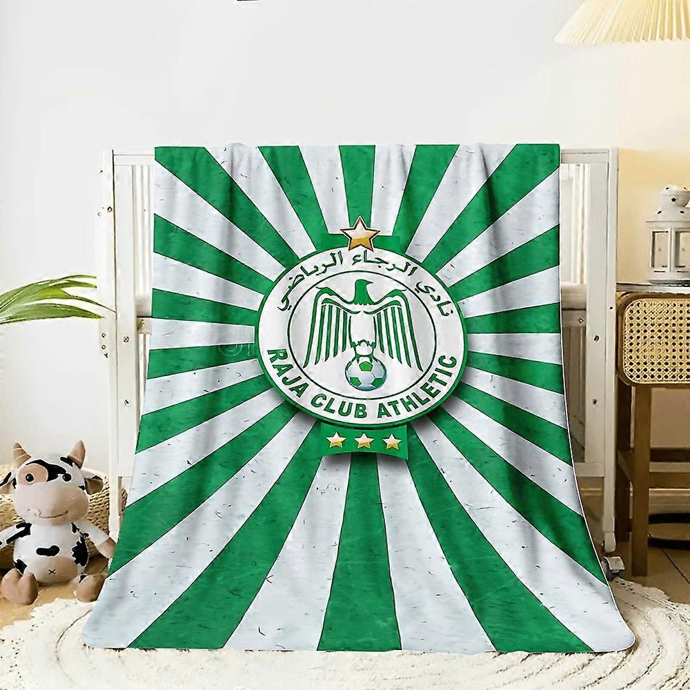 1pc Raja Club Athletic Inspiration Flannel Blanket - Green & White Striped Design with Eagle Emblem, Soft Warm Throw for-UYRTA2