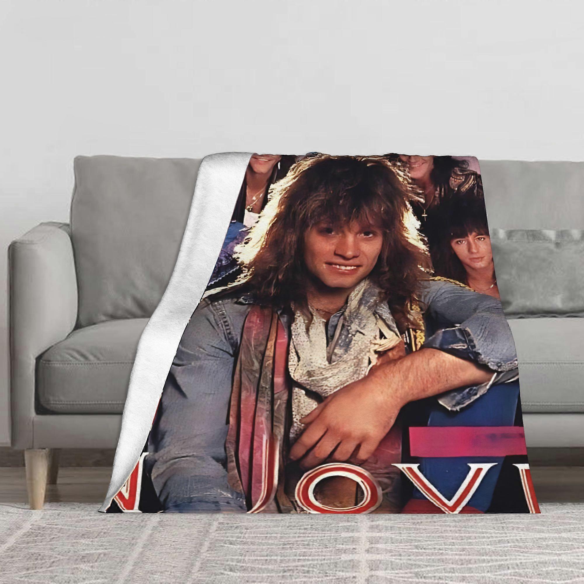 Bon Jovi Band Throw Blanket - Soft Flannel Bedspread with Jon Bon Jovi Portrait - Machine Washable All-Season Decor for -UYRTA35
