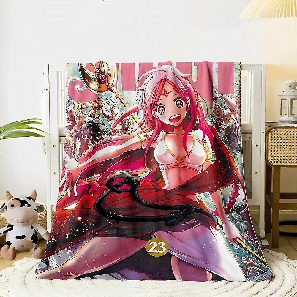 1pc Anime Manga Flannel Blanket - Plush Soft Warm Throw with Pink Hair Warrior Design, All-Season Couch Bedspread for Li-UYRTA115
