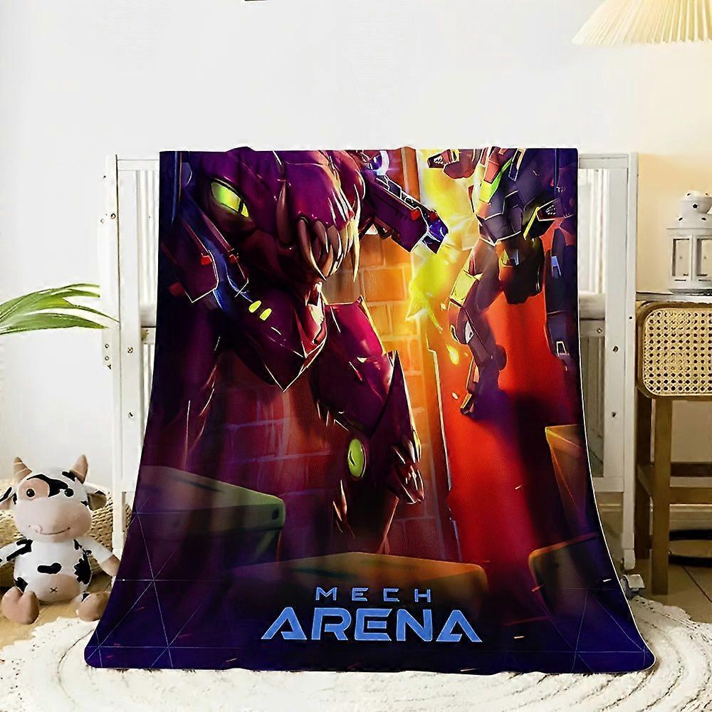 1pc Flannel Blanket with Mech Arena Battle Gaming Design - Soft Warm All-Season Sofa & Bed Throw, Vibrant Purple/Blue/Gr-UYRTA286