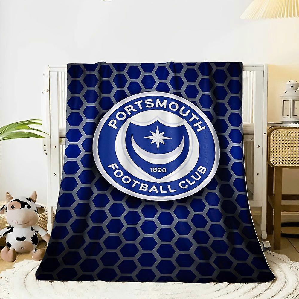 1pc Flannel Blanket - Portsmouth Football 1898 Emblem Print, Hexagon Honeycomb Pattern, Navy & White, All-Season Multi-P-UYRTA295