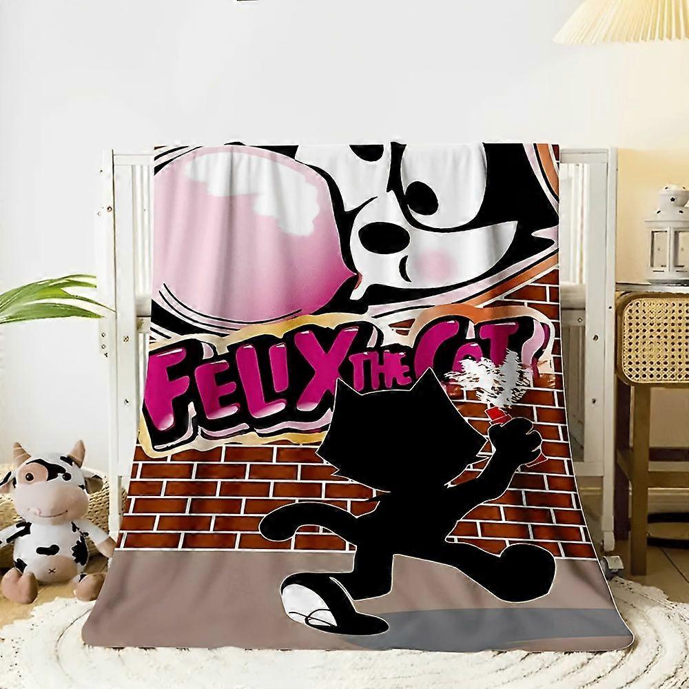 1pc Felix the Cat Photo Theme Flannel Blanket - Soft Warm All-Season Bedspread & Sofa Cushion, Pink & Black Retro Cartoo-UYRTA342