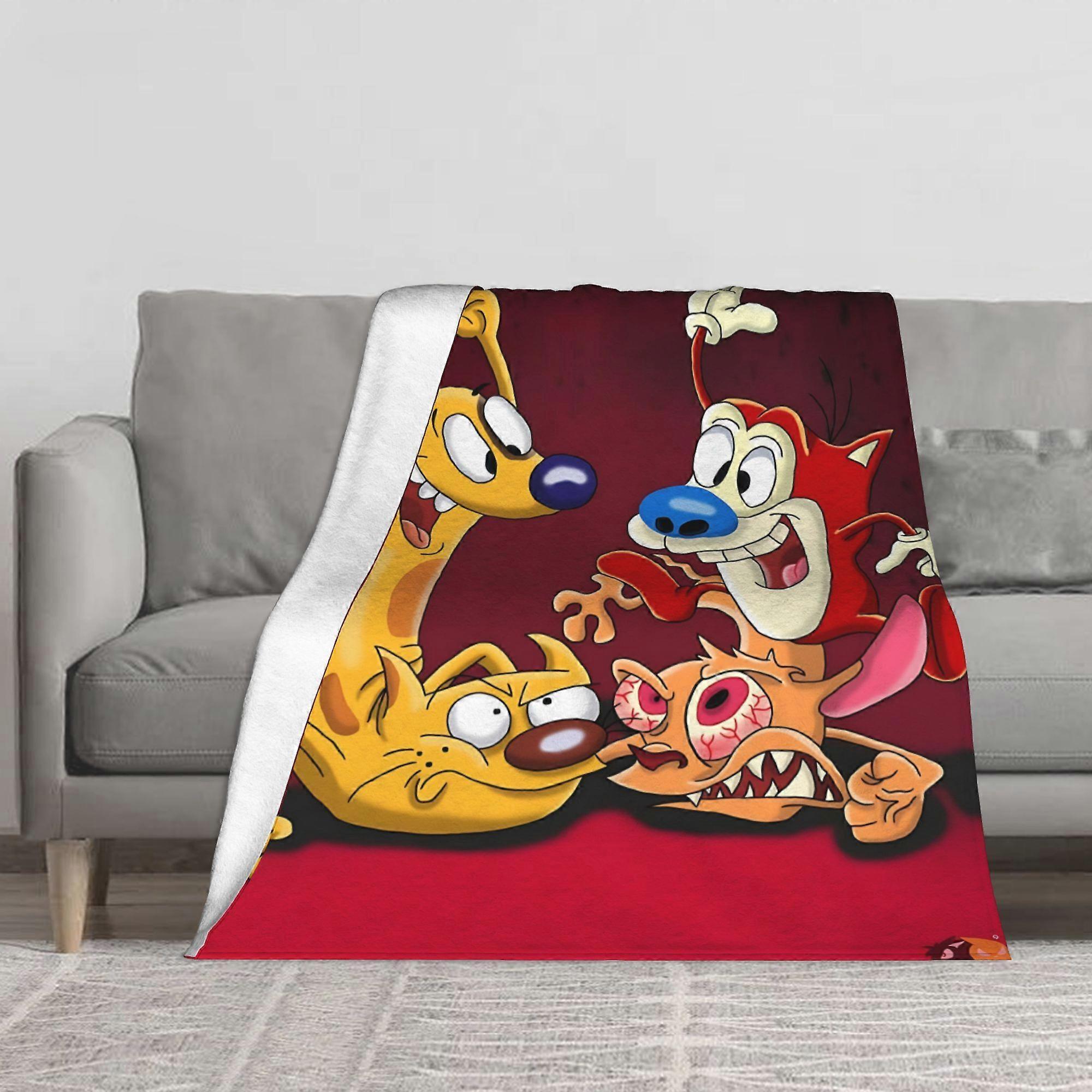 Ren & Stimpy Show Fuzzy Flannel Blanket - Iconic TV Show Characters (Ren, Stimpy Toast Mans) - Soft Bedspread for Adult-UYRTA432