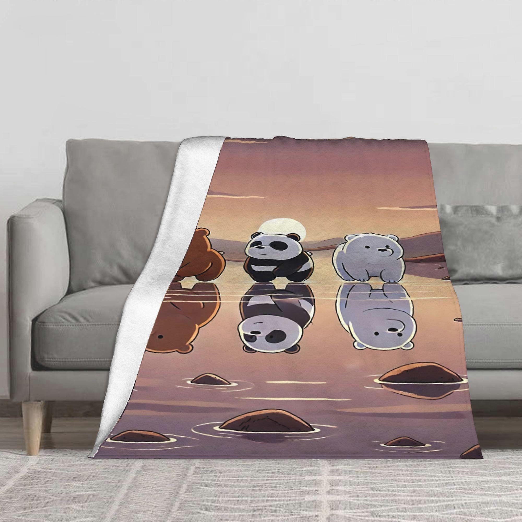 We Bare Bears Fleece Blanket - Soft Flannel Plush All-Season Cozy Throw with Grizzly, Panda & Ice Bear Design, Beige/Bro-UYRTA427