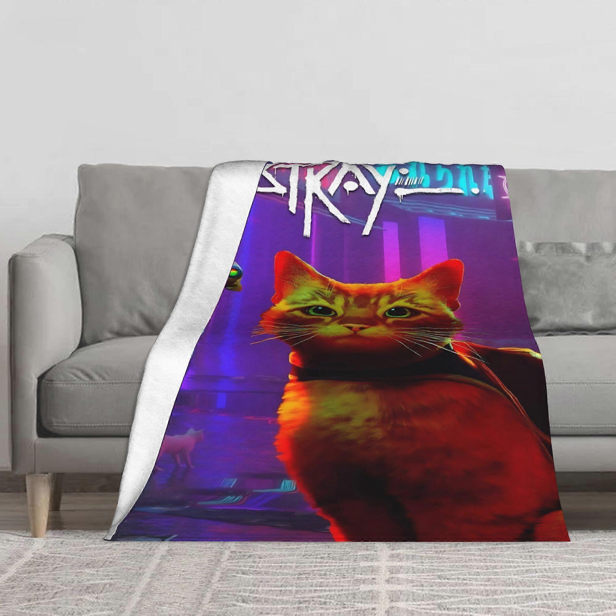 stray cat & Neon Text Flannel Blanket - Ginger Tabby Cat Design with STRAY Lettering,sAll-Season Soft Bedspread for Beds-UYRTA445