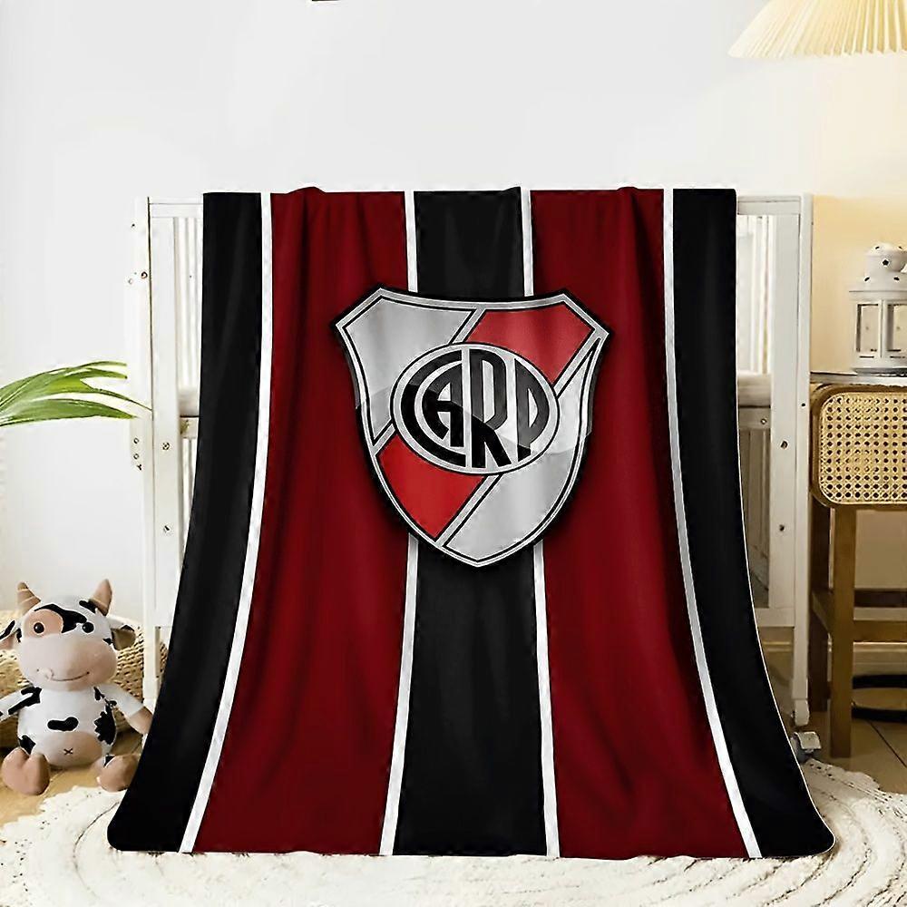 1pc Club Atletico River Plate Flannel Blanket - Soft Warm All-Season Throw with Team Logo, Red & Black Stripes, Machine -AZXCM27