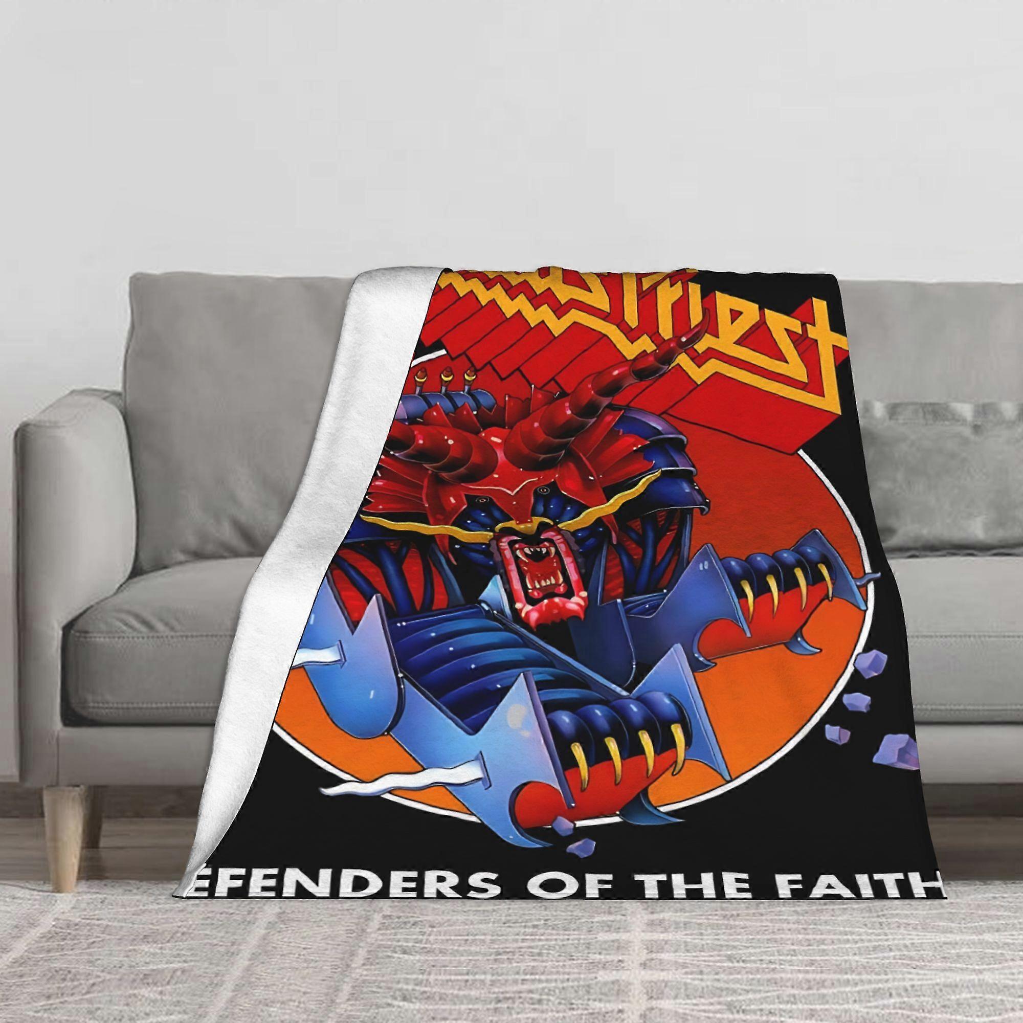 Judas Priest Syncprinting MarkInspire Flannel Blanket - Vibrant Red & Blue Character Design, Soft Polyester, All-Season -AZXCM39