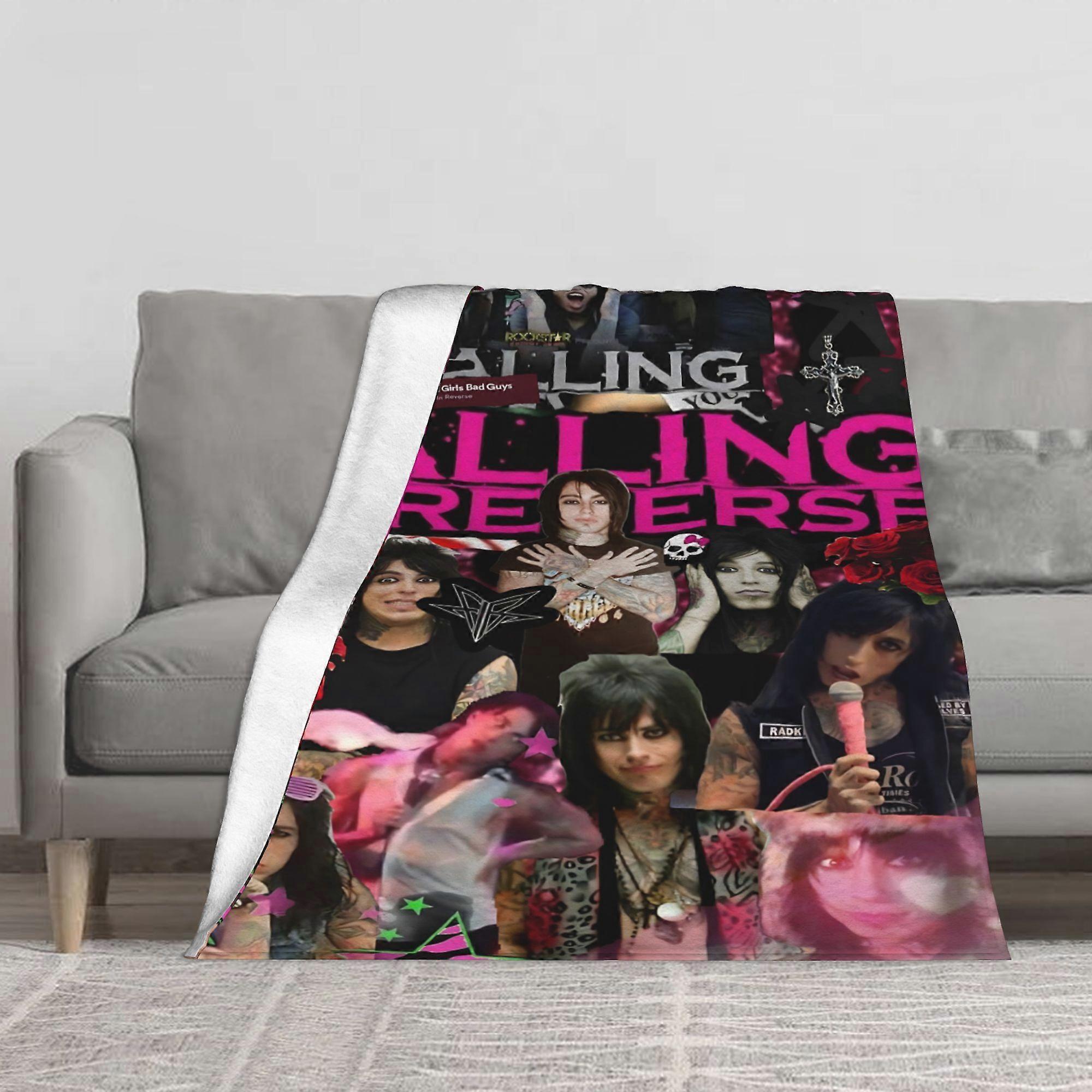 1pc Falling In Reverse Band-Themed Fleece Blanket - Black & Pink Pop Art Design with Lyrical Graphics, All-Season Soft F-AZXCM90