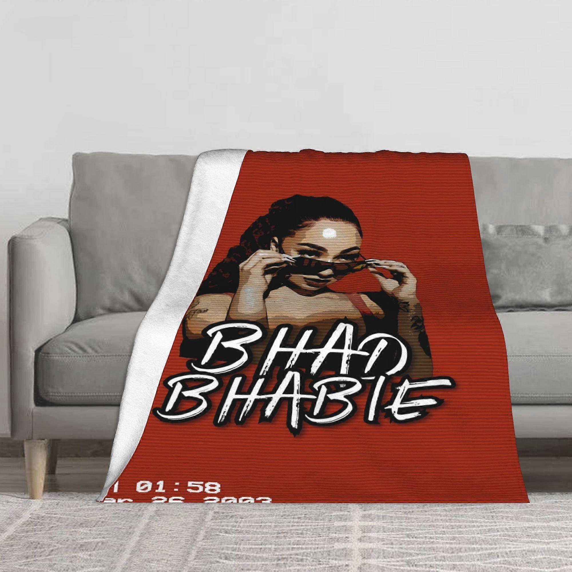 1pc Bhad Bhabie Throw Blanket - Extra Soft Flannel Plush All-Season Luxury Bedspread - Red & Black Bold BHAD BHABIE Text-AZXCM182
