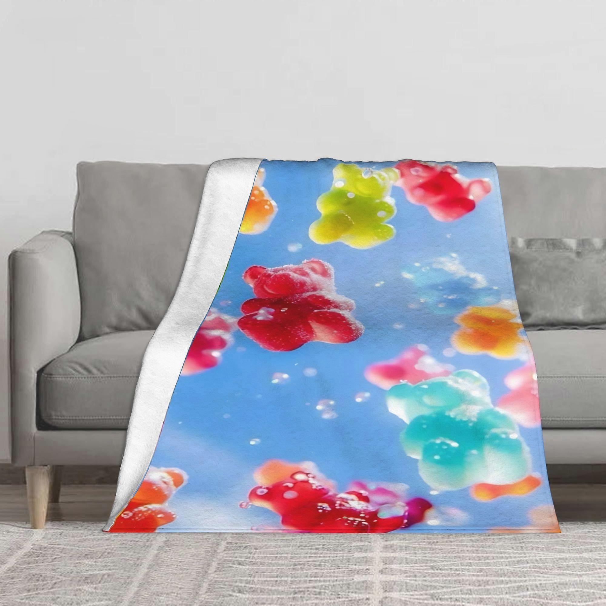 Gummy Bears Plush Flannel Blanket - Soft All-Season Throw with Cute Bear Design, Multi-Use for Living Room, Bedroom, Val-AZXCM199