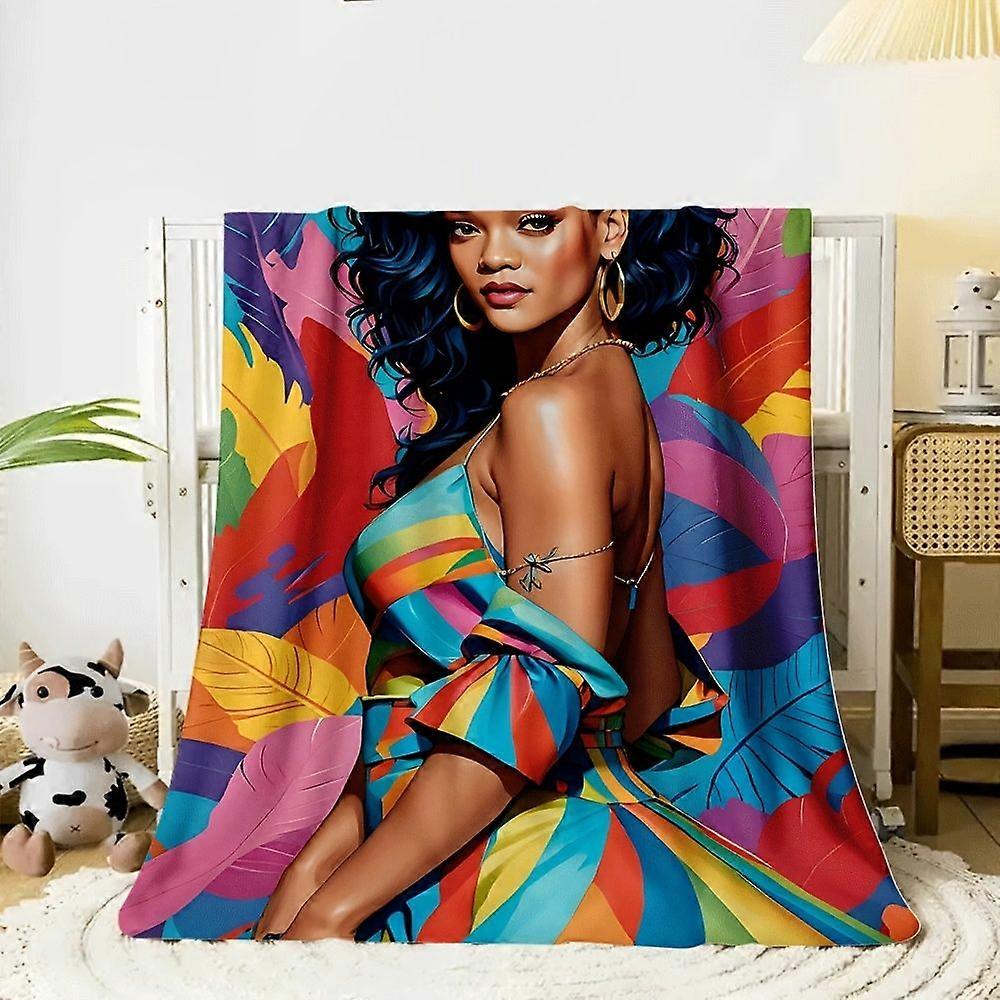 1pc Rihanna Portrait Flannel Blanket - Soft Polyester Throw with Vibrant Tropical Design, Machine Washable, Multi-Purpos-AZXCM226