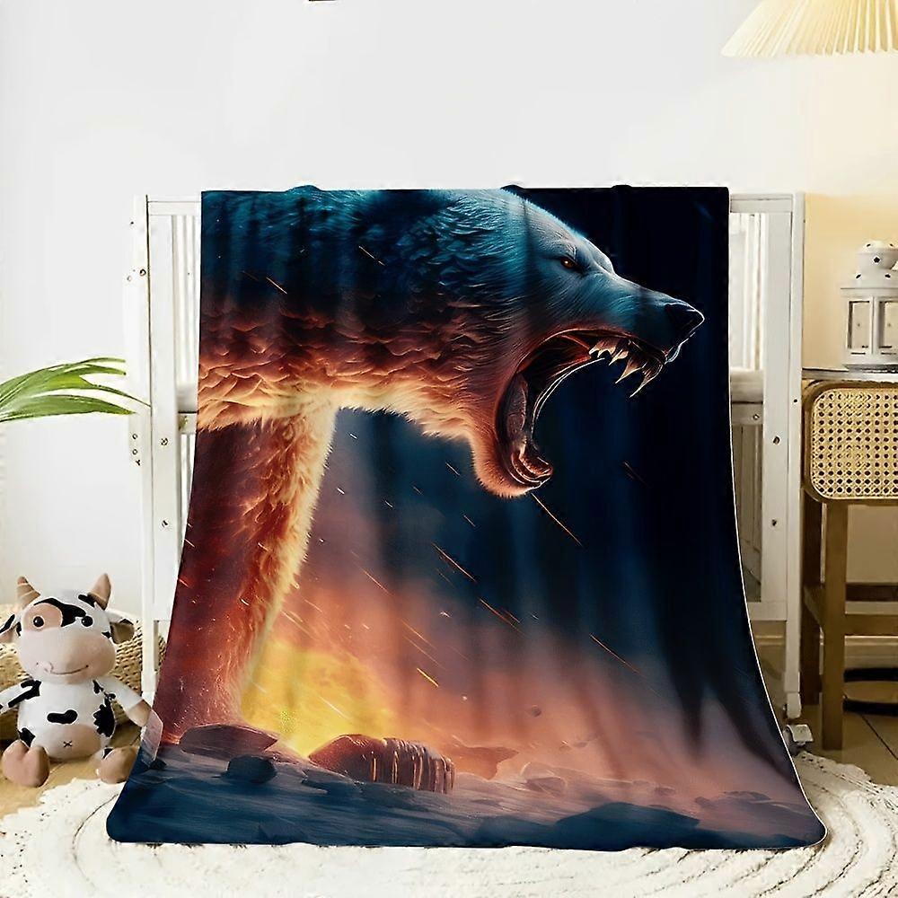 [JIT]1pcs, Flannel blankets, Berlin Polar Bea printing0, Flannel blanket, simple solid color, can be used as bed cover, -AZXCM289
