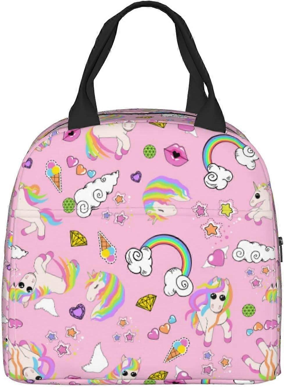 Insulated Lunch Bag for Women & Men, Unicorn Rainbow Clouds Design, Reusable with Pocket & Zippers, Compatible with standard lunch containers