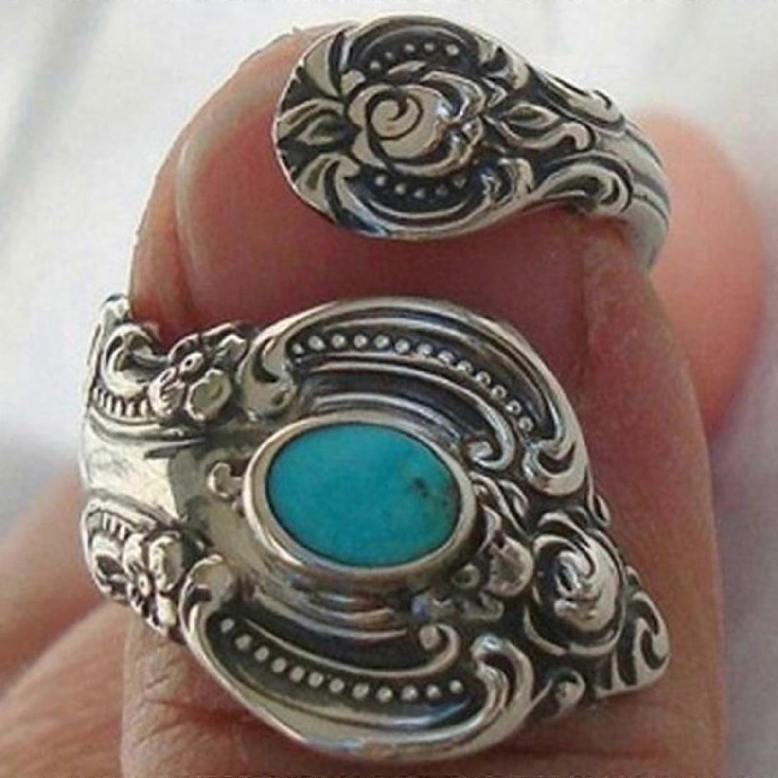 Vintage Turquoise Adjustable Ring Size 7, Creative Flower Plated Thai Ring, European & American Fashion Jewelry, Valentine's Day Gift