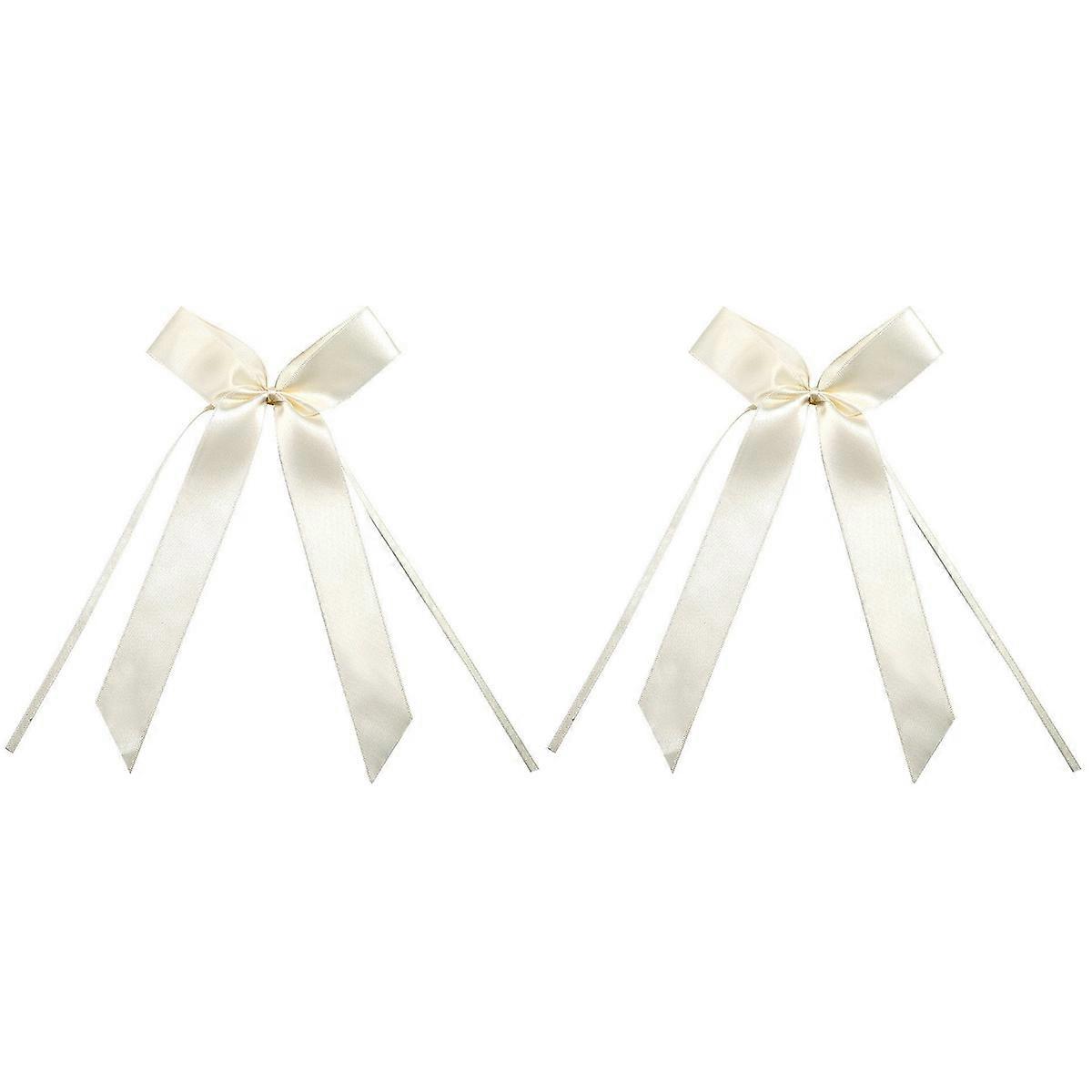 20 Pcs Wedding Polyester Ribbon Bow Tie Gift Box Decor Wedding Bow Knots Ribbon for Car Wedding Decoration (Beige)