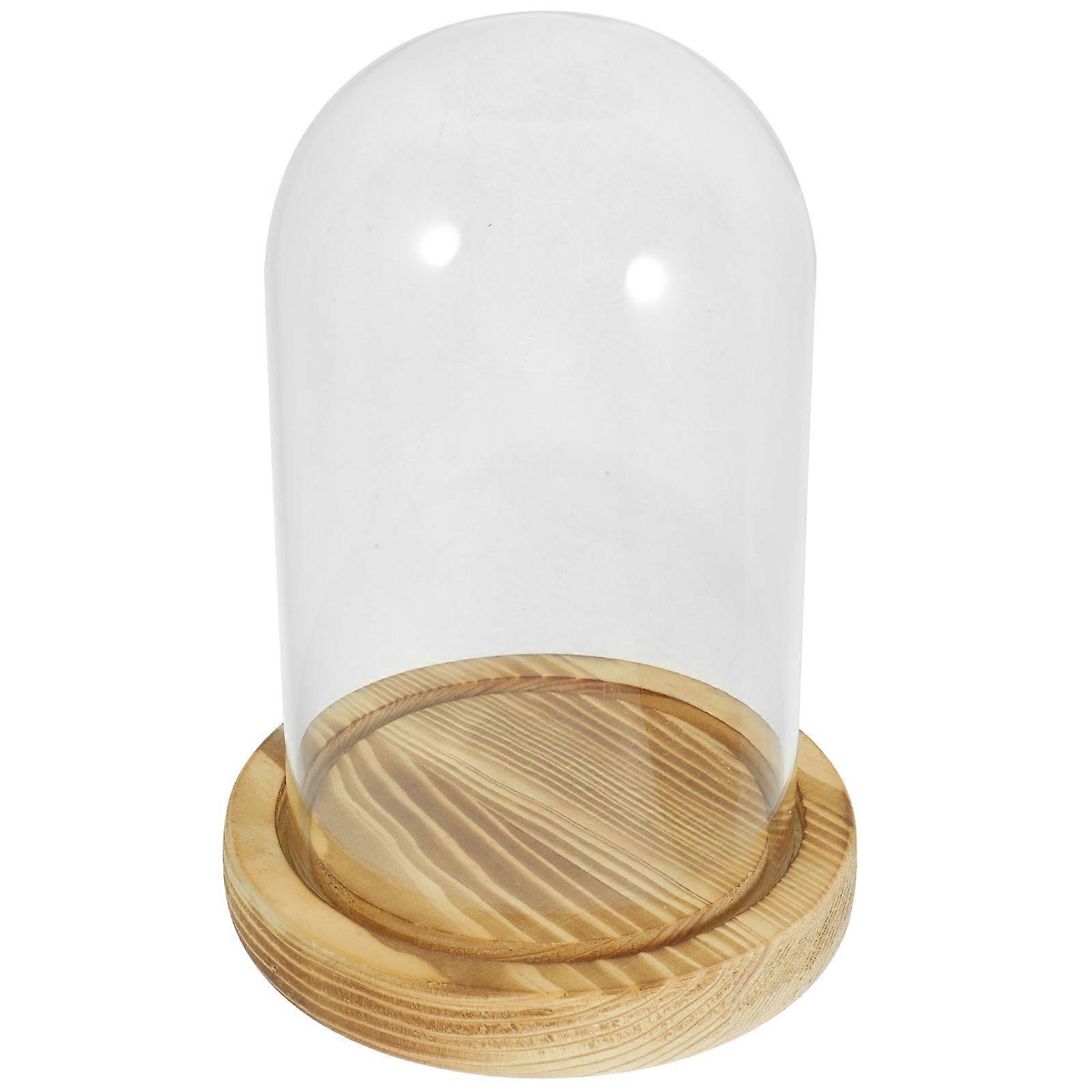 Wooden Base Glass Cover Decor Dried Flower Base Gift for Coworker Cake Stand with Dome Glass Dome Display Case