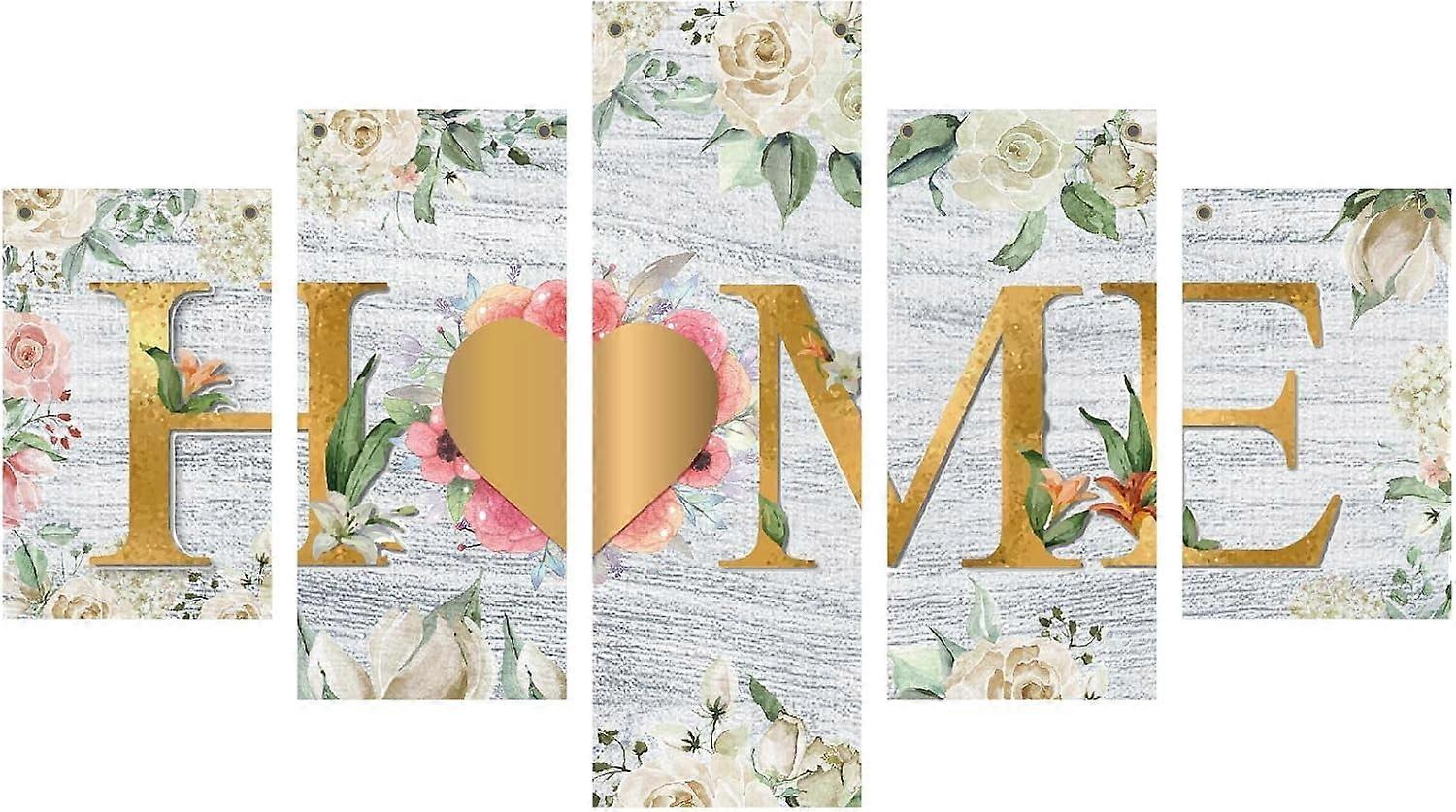 5PC Canvas Wall Art Love Sanctuary, Oxford Cloth Flower Prints, Compatible with Modern Home Office Decor, Unframed 53x29.5"