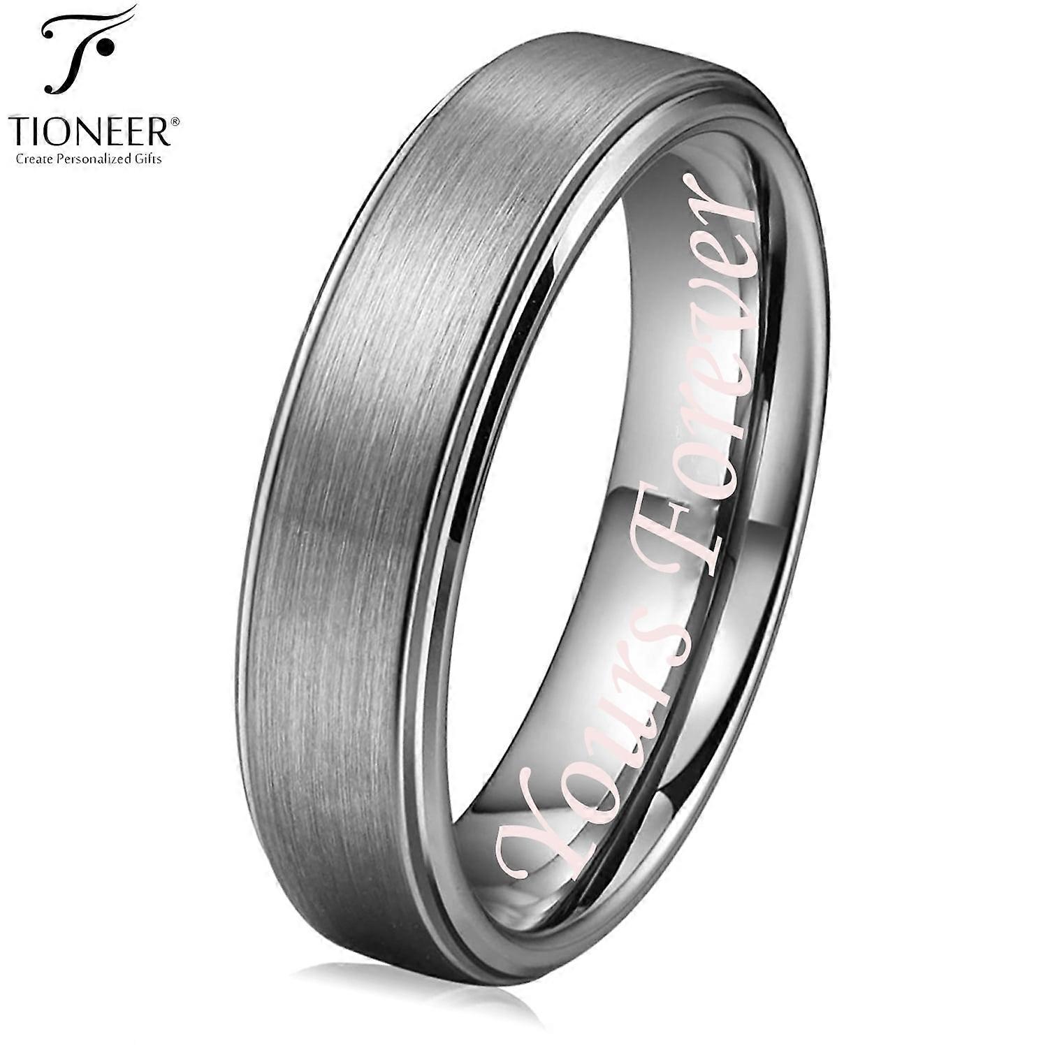 Tioneer Tungsten Carbide Brushed Pipe Cut Polished Edges Wedding Band Ring w/Free Yours Forever Engraved 6MM