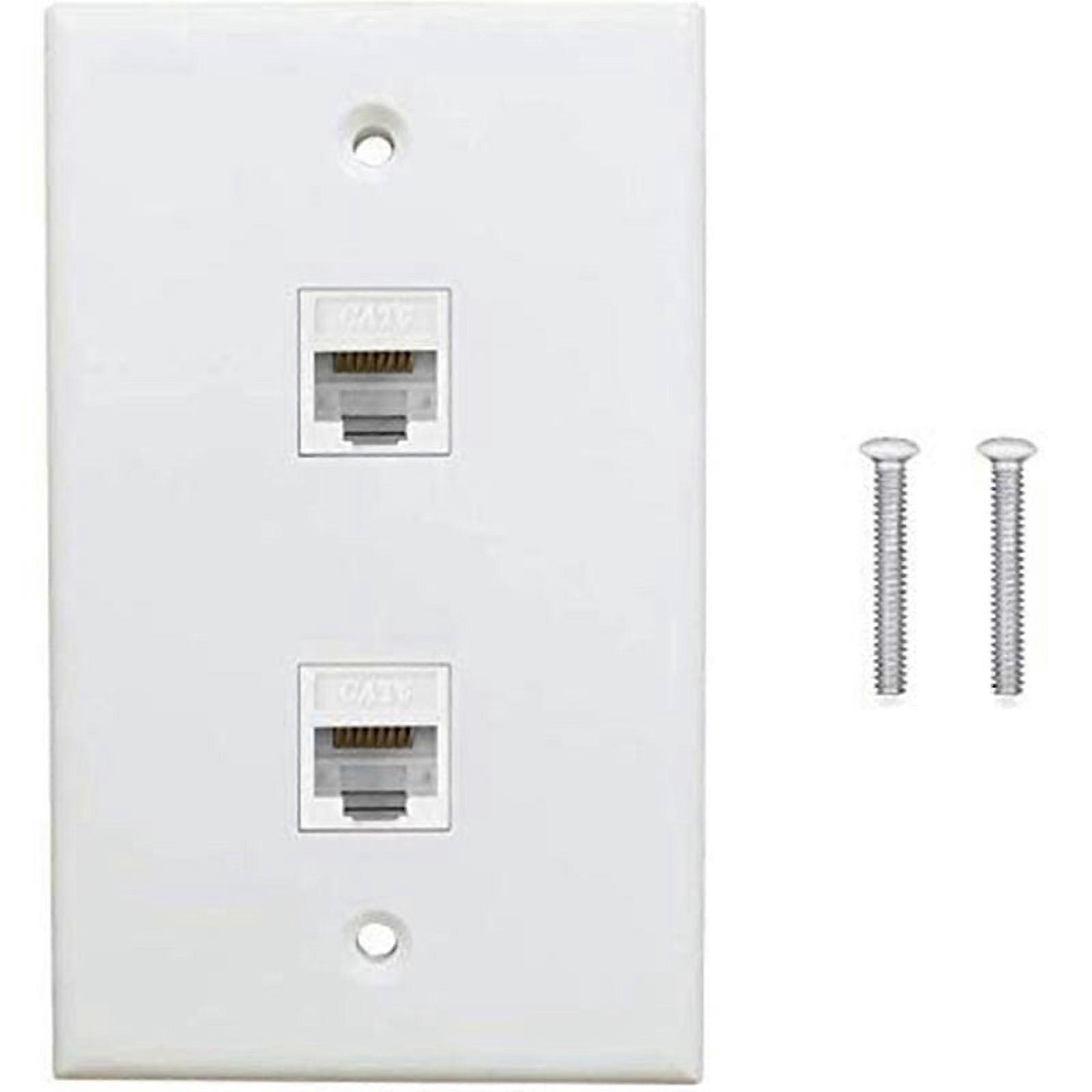 1 Pack 2 Port Ethernet Wall Plate, Cat6 Female to Jack RJ45 Inline Coupler Outlet, White