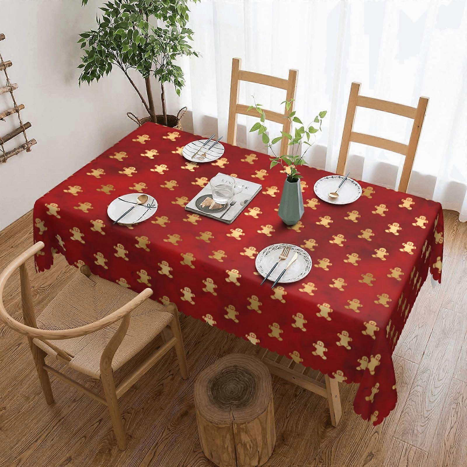 Red Gold Gingerbread Tablecloth, Water Resistance Spillproof Table Cloth For Thanksgiving/Christmas Family Tablecloth