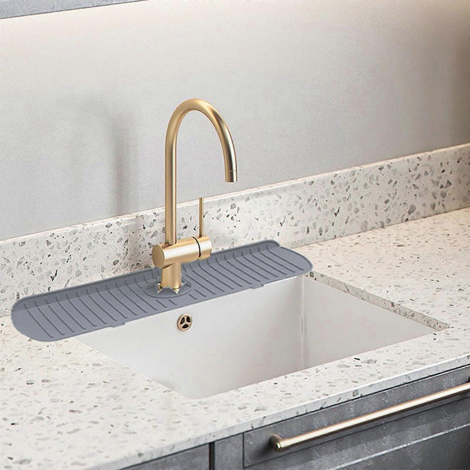 WJSXC Silicone Sink Faucet Mat, Gray - Splash Guard & Draining Pad, Compatible with Kitchen & Bathroom Faucets