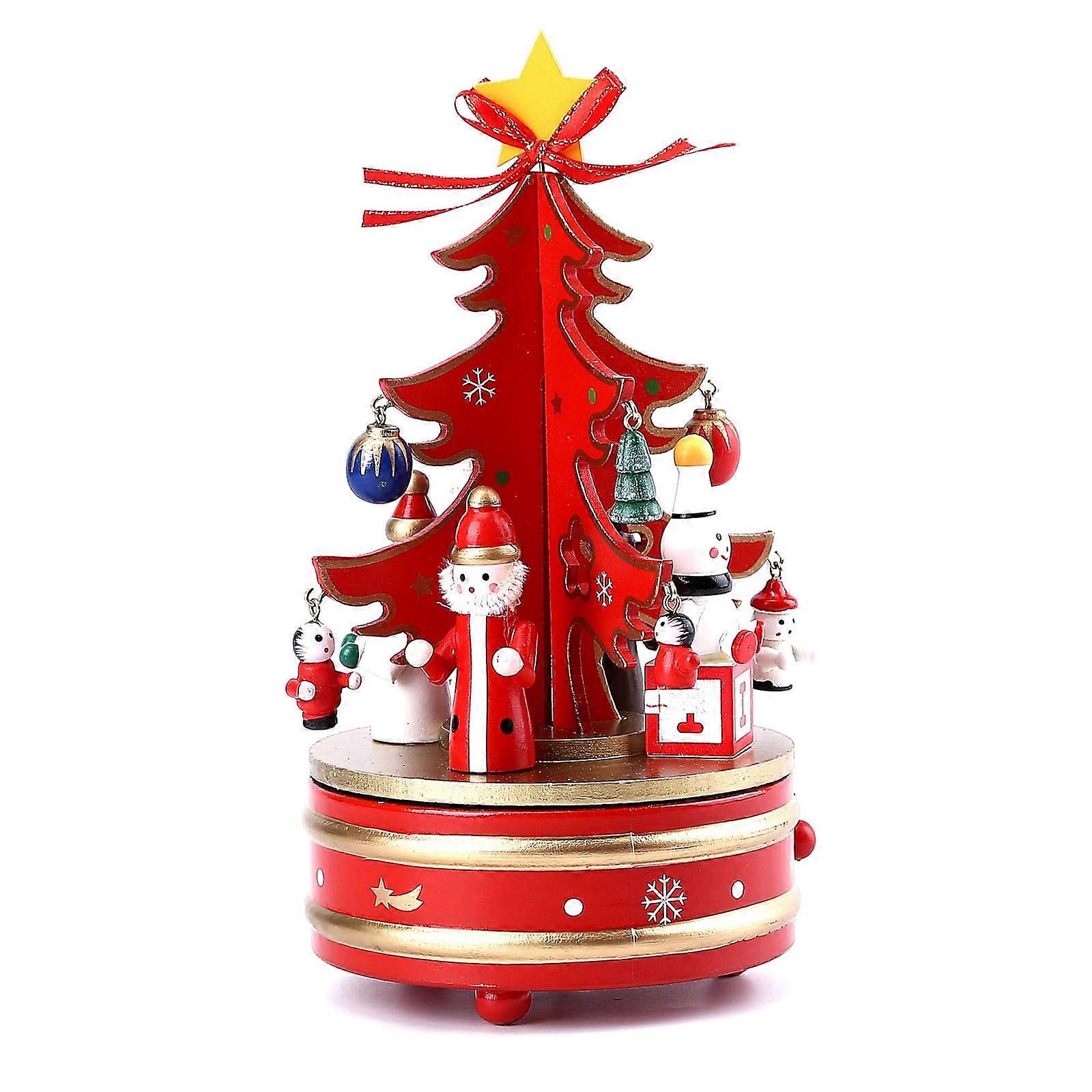 [808Ck Red Christmas Tree] Wooden Carousel Music Box, Compatible with Christmas Decor, Gift & Desktop Ornament, Red - Clearance