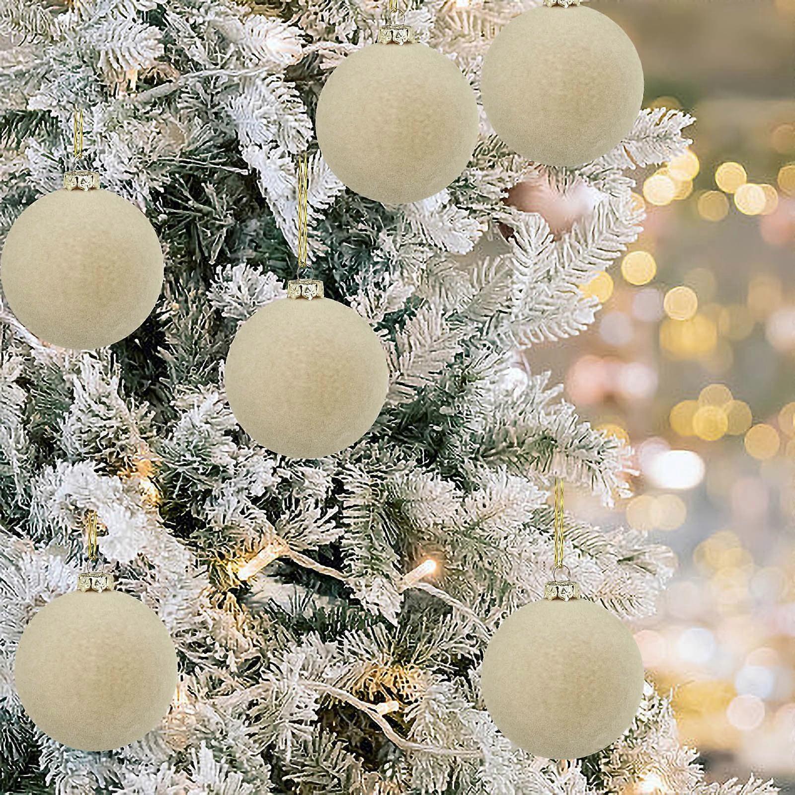 12 Pcs Velvet Christmas Ball Ornaments, 2.36 Inch Flocked Plastic Xmas Tree Hanging Decorations for Holiday Party (Beige)
