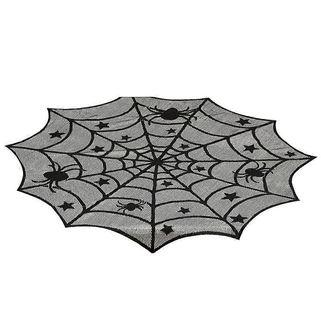 Halloween Bat Spider Web Table Cover, Black Lace Round Tablecloth for Party Decor