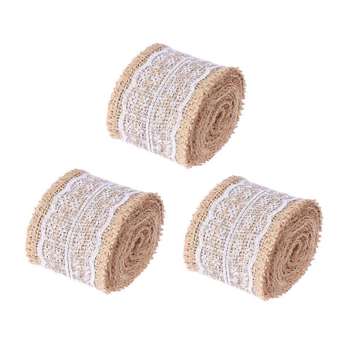 3 Rolls Wedding Decorative Burlap Fabric Ribbons Jute Roll with Lace for Craft Gift DIY Projects 200x6cm