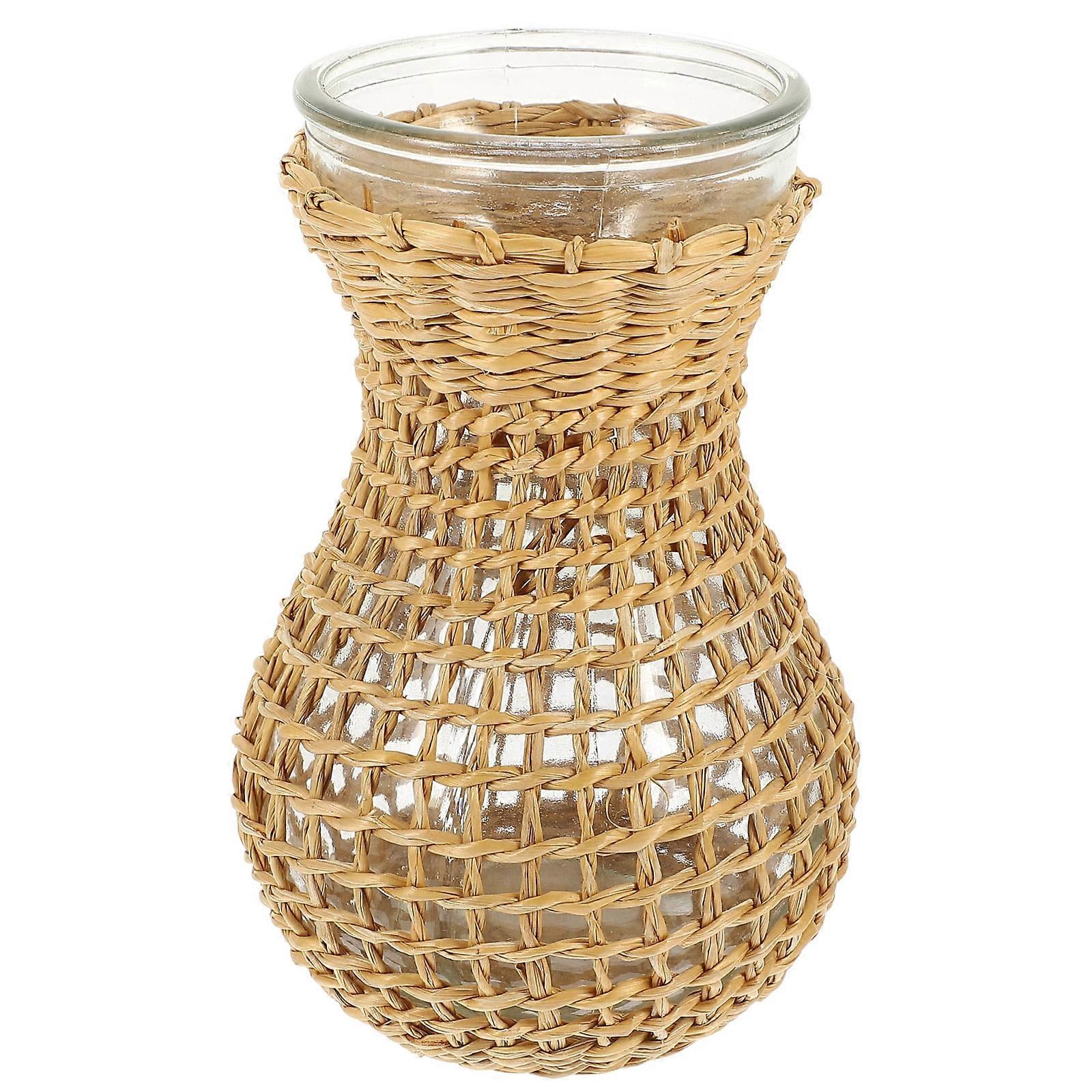 Table Centerpieces Vase Clear Glass Rattan Grass Desktop Pedestal Handmade Dried Flower Arrangement Woven Planter