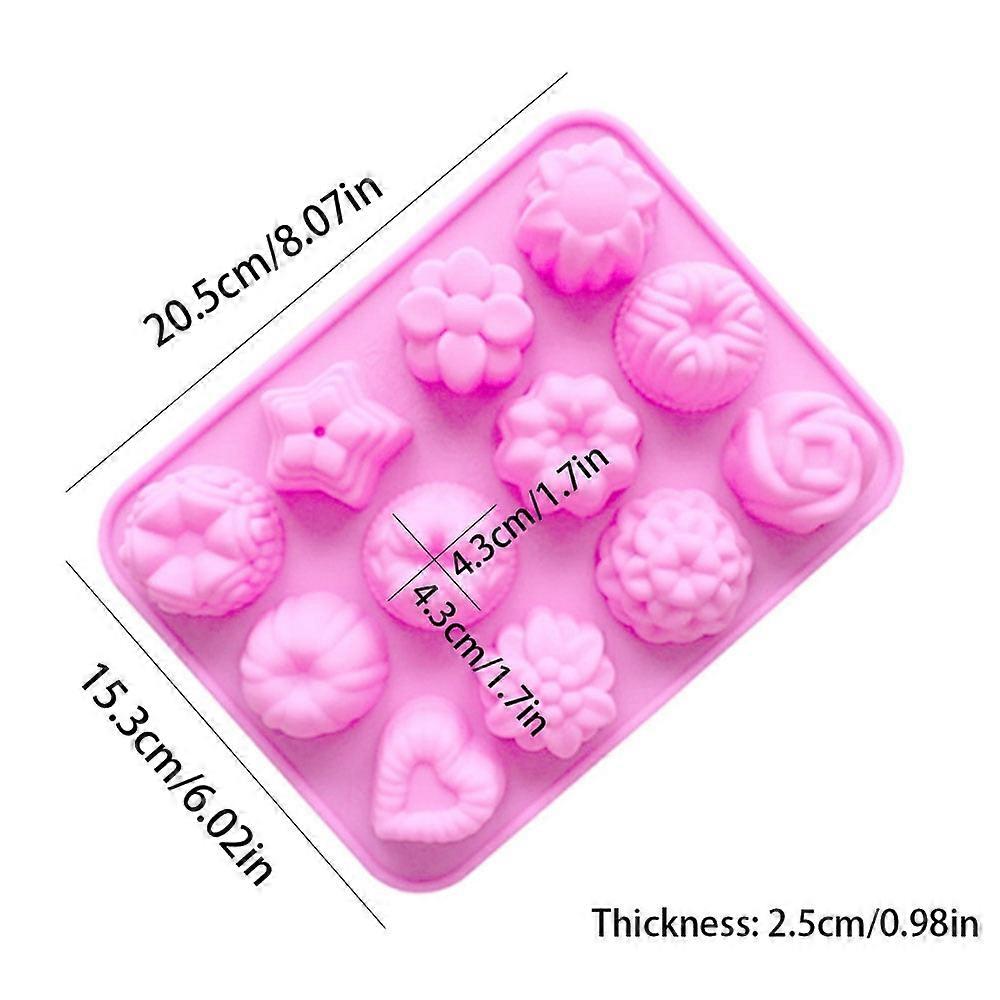 12 Holes Silicone Pastry Chocolate Molds for Oven Individual 3D Mini Dessert Flowers Heart Star Muffins Cupcake Baking Pan Tray