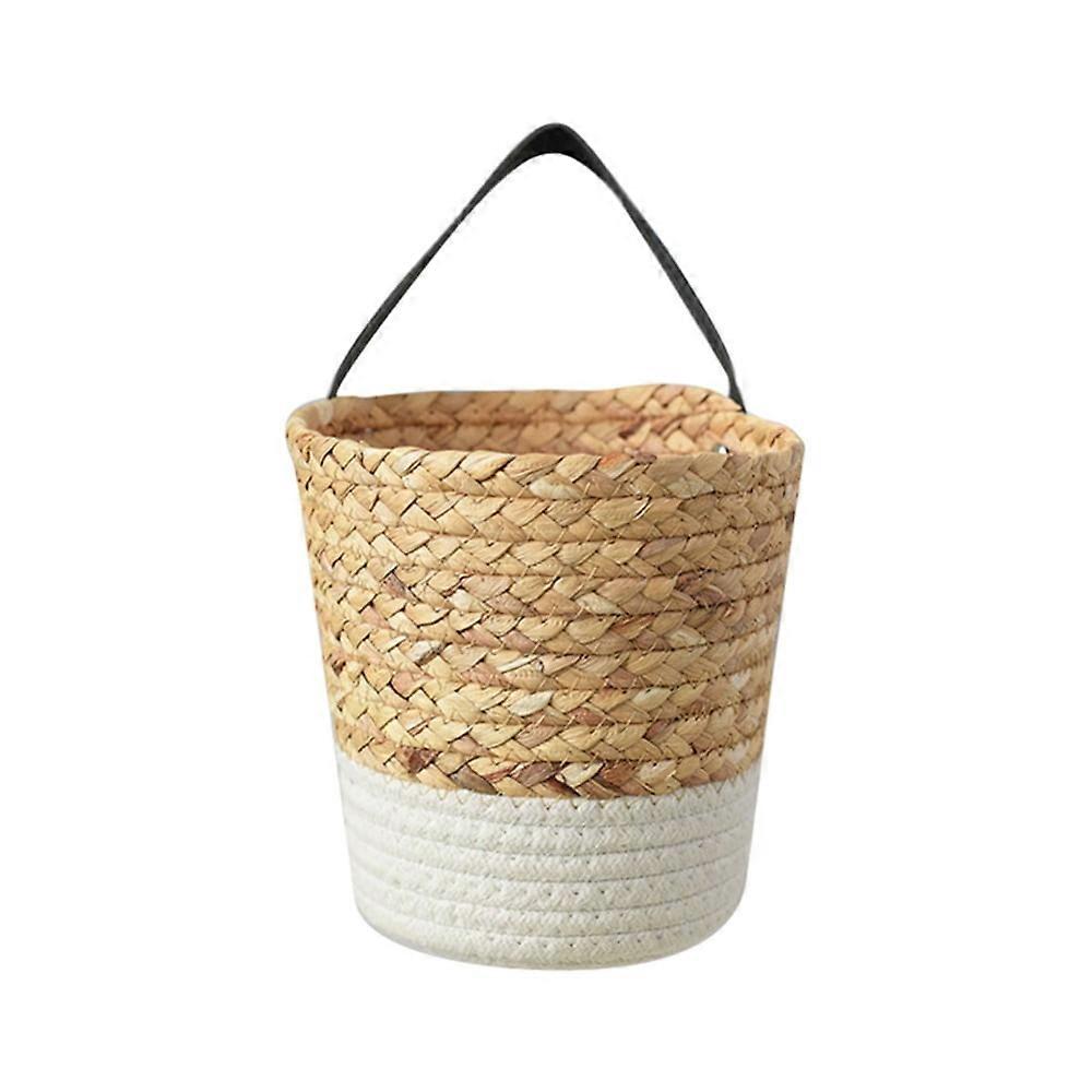 Product Description: Material: grass Size: Large diameter 18cm, depth 18cm, total handlebar height 26cm, Small diameter 16cm deep 16cm handlebar height 23cm; packaged in individual OPP bags. Package: 1 piece hint: 1. The color of natural straw is different, and the weight varies from person to person. 2. Handmade, there are handmade traces, please allow 1-2 cm error. The storage basket is made of straw, which is more upright, concise and delicate, with natural texture and can be used repeatedly. This storage basket has hanging ears, which can be hung on hooks to save storage space, or can be placed on the desktop, not only for storage, but also for home decoration. Hand-woven straw baskets, environmentally friendly materials, safe to use, can be used as fruit baskets, flower baskets, storage baskets, and have a wide range of uses. Use the storage basket to store keys, snacks, cosmetics, etc. It can be used in multiple scenarios, and small household items can save storage space and make the home more tidy. It can be used as home decoration, photo props, wedding decoration, decoration and practical.