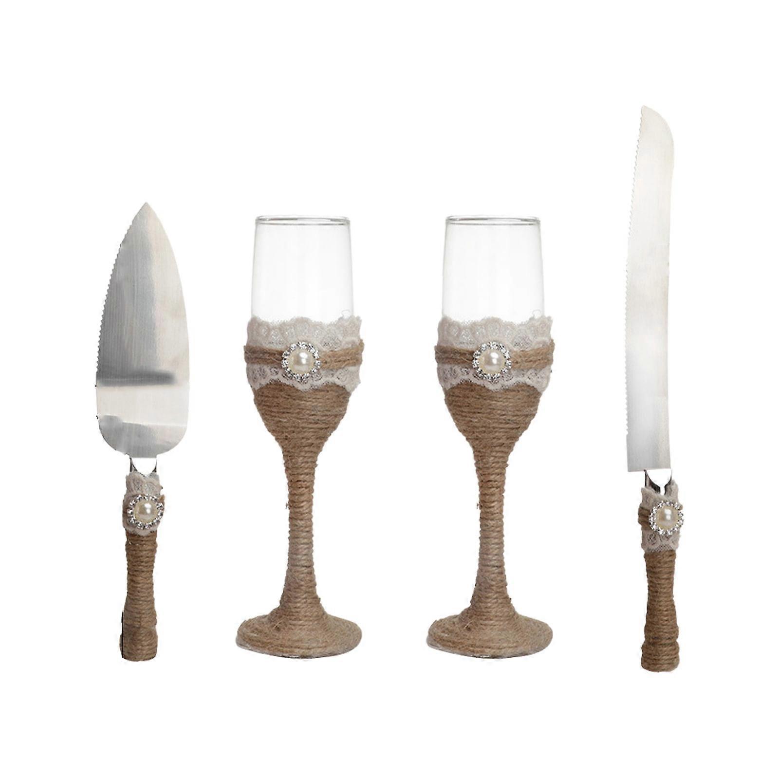 Cake Knife & Server Set with Champagne Glasses, Compatible with Rustic Wedding Supplies for Parties, Birthdays, Anniversaries, Bride Groom Gifts,