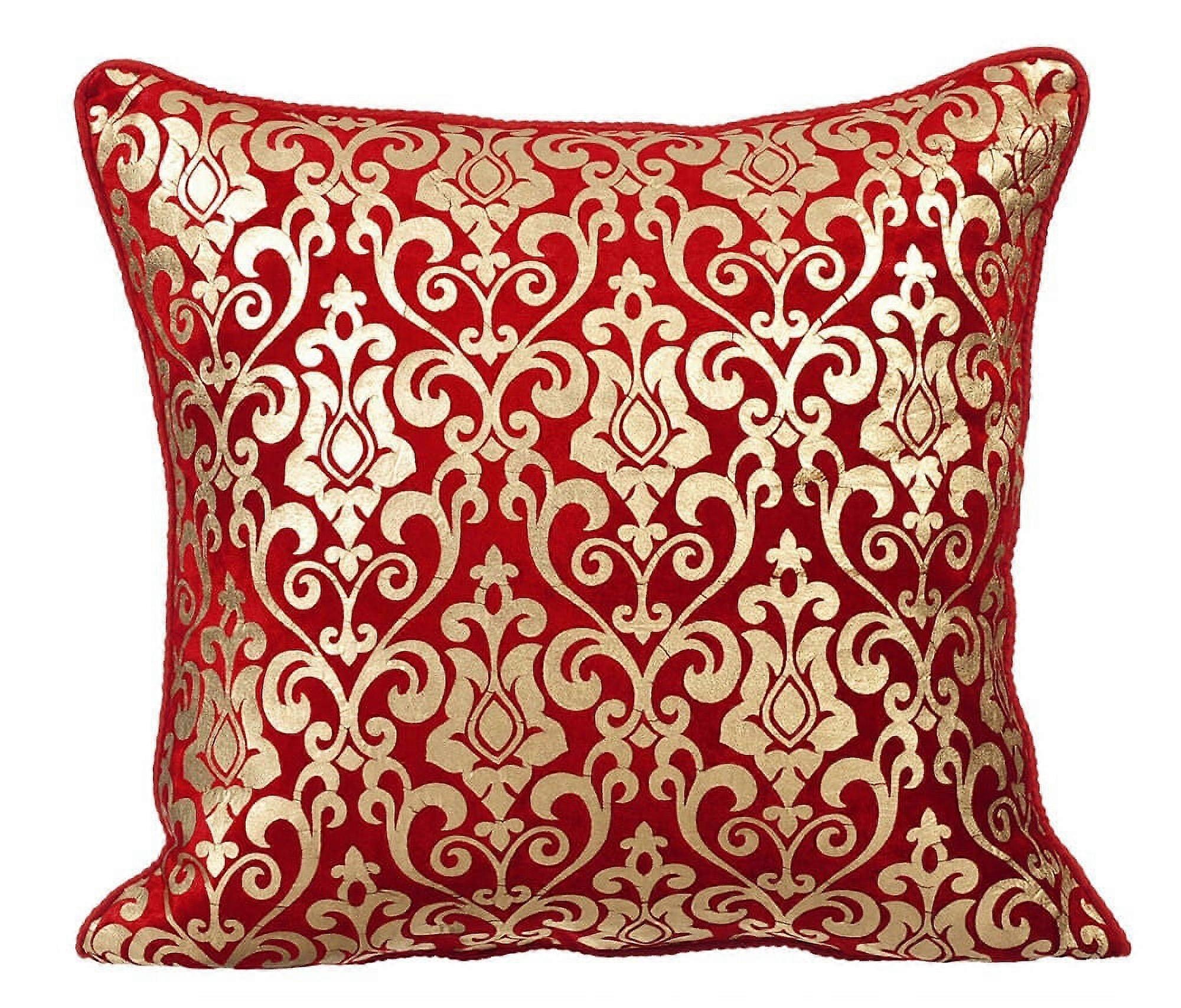 HomeCentric Pillow Covers with Zippers, 18x18 inch Velvet Throw Pillow Covers Red Pack of 2, Gold Damask, Victorian Easter - Red Festive