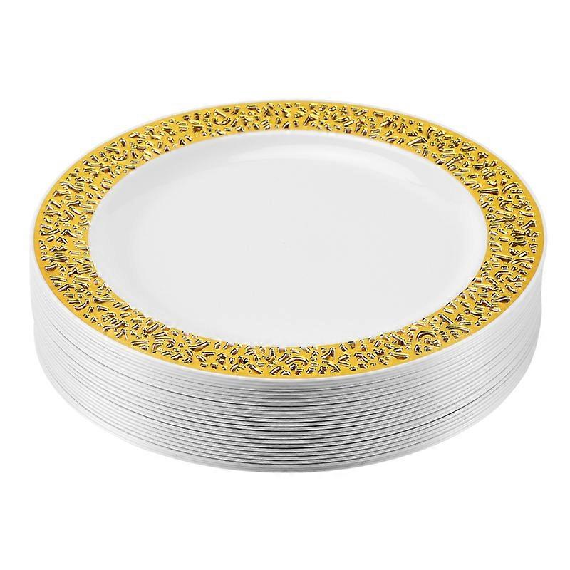 Gold Disposable Plastic Plates -Lace Design Wedding Plastic Plates,Gold Lace Plates Salad/Dessert Plates 25Pack-7.5Inch