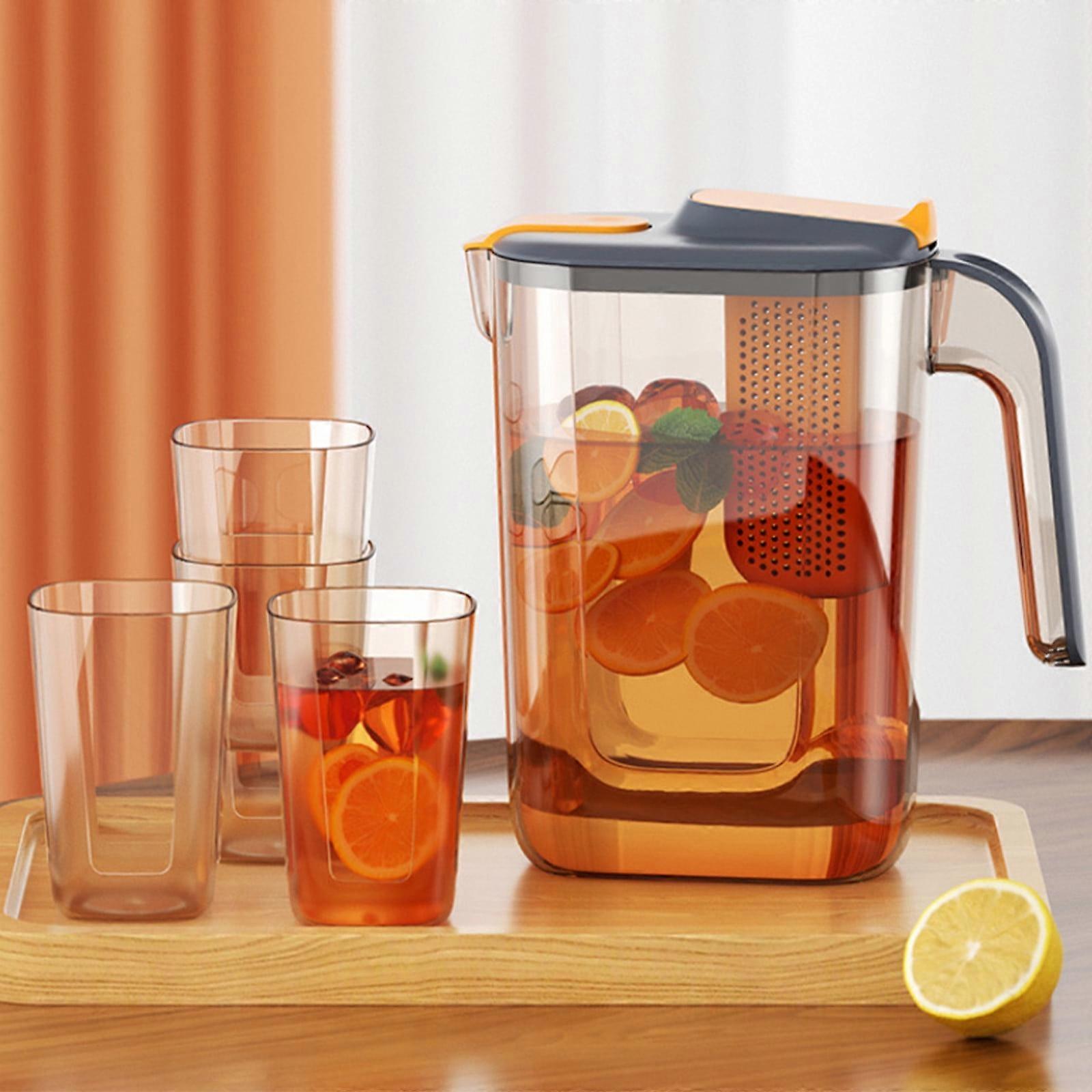 EQWLJWE 2.6L Fruit Infuser Pitcher with Filter, Heat-Resistant for Cold Water, Juice, Iced Tea, Camping Travel, Black