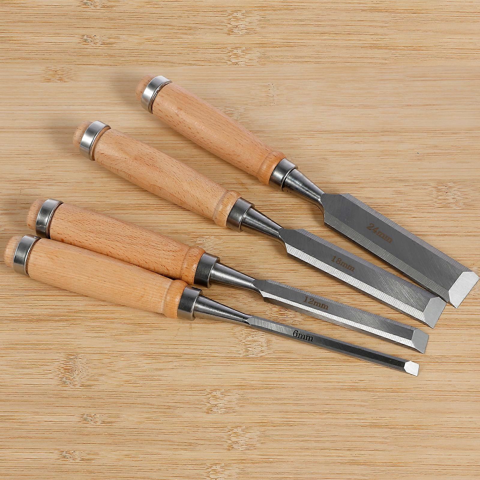 Grusce 4Pcs Wood Chisel Set, Chrome Vanadium Woodworking Chisels with Anti-Slip Handle, Compatible with DIY, Carpenter, Beginner Projects