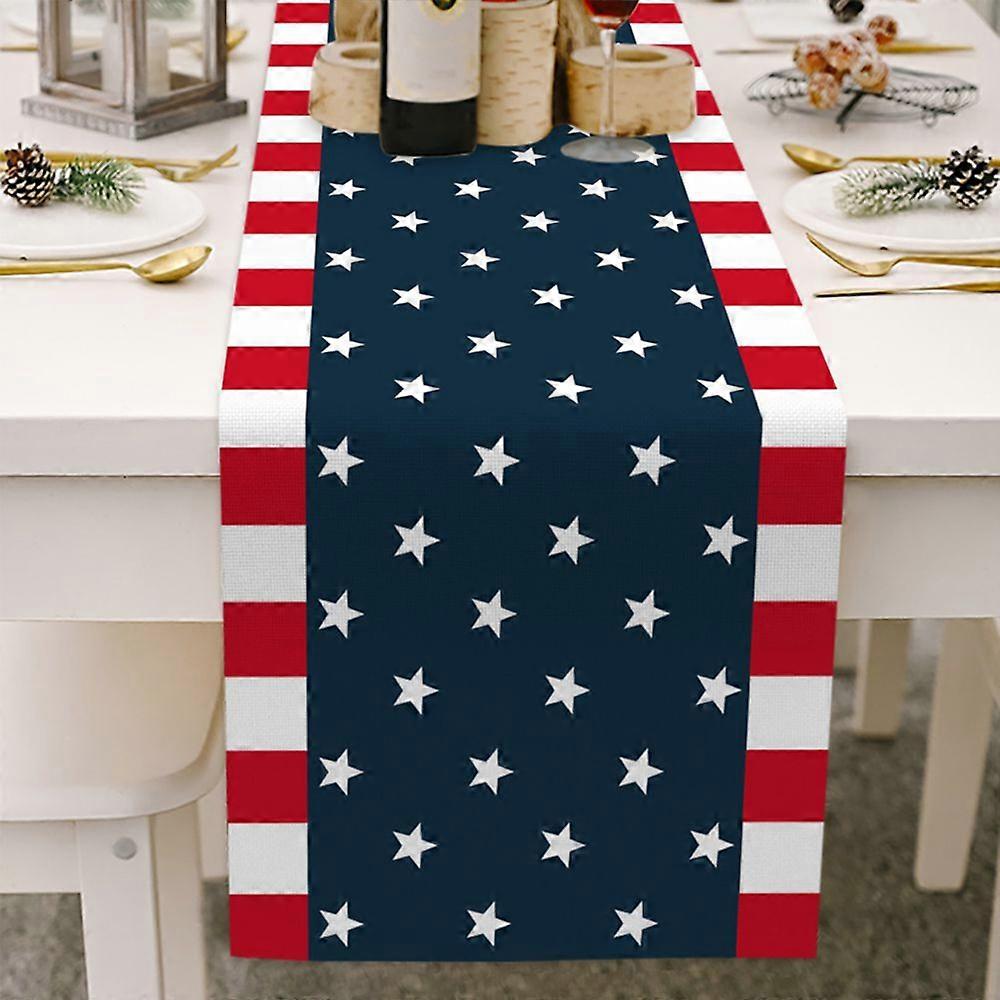 Farmhouse Table Runner Dresser Scarf for Kitchen Dining Decor, American Flag Rustic Burlap Linen Tabletop Cover for Indoor Outdoor Use, 13"x70"