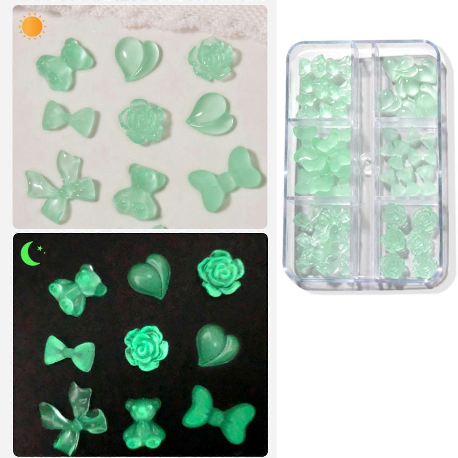 Bear Bow Heart Nail Rhinestones Gems 3D Luminous Nail Art Charms Glitter Decals