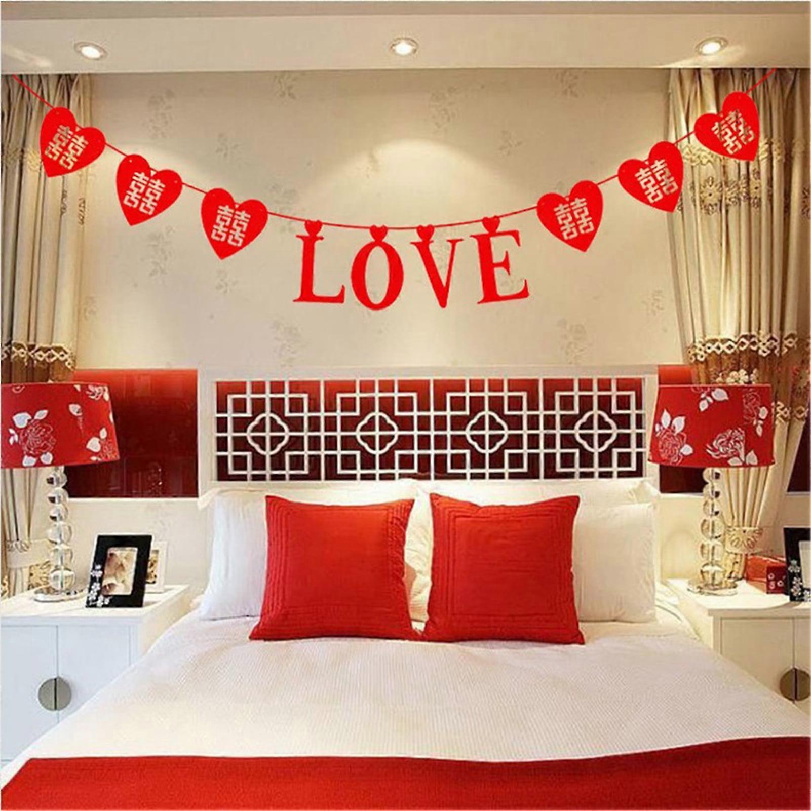SUSUchens Double Happiness Banner Fine Workmanship Easy to Use Non Woven Fabric Chinese Red Love Hollow Double Happiness Garland for Bedroom Style C