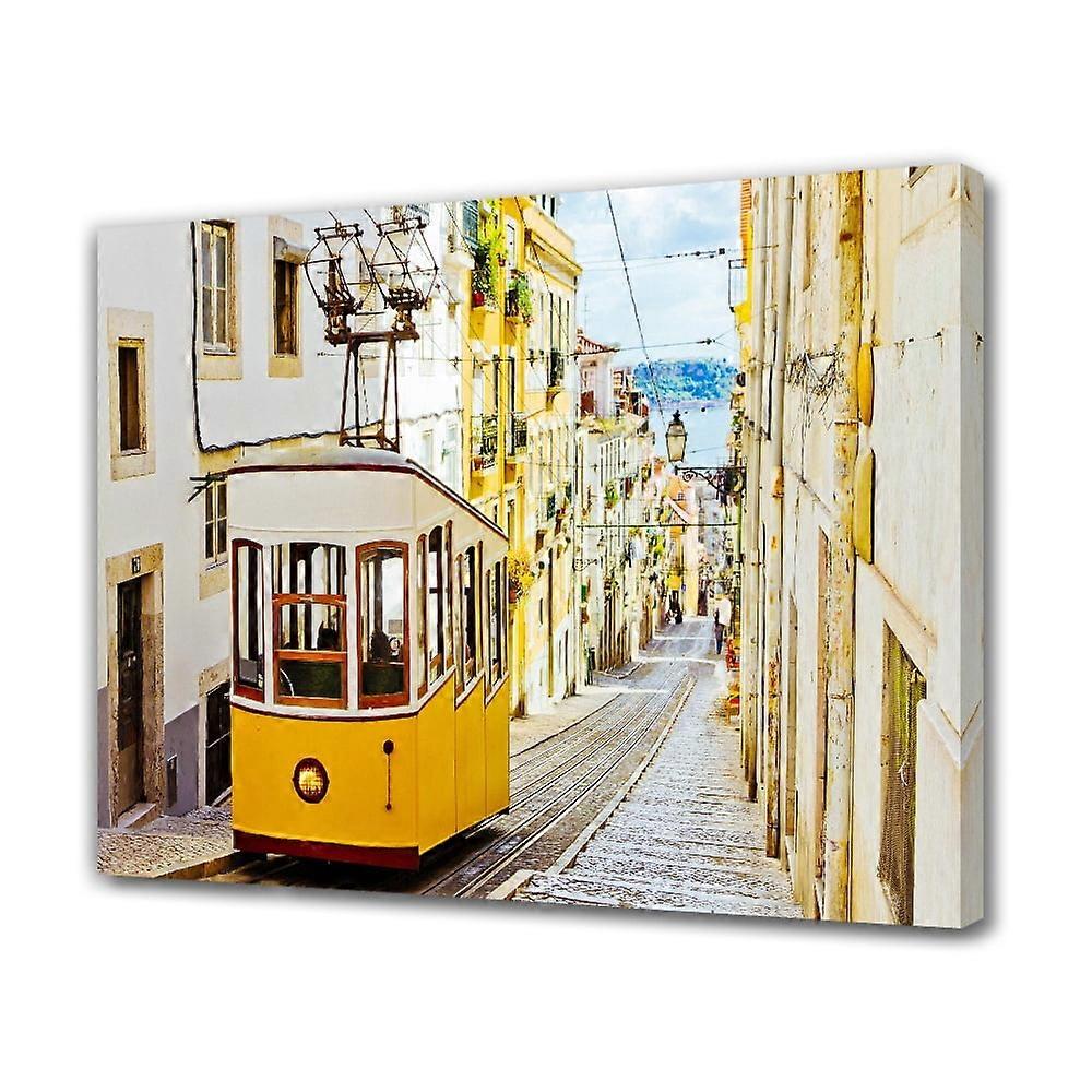 Lisbon Portugal Tram train - Funicular Canvas Poster Bedroom Decor Sports Landscape Office Room Decor Gift,Frame-style,16x24inch(40x60cm)