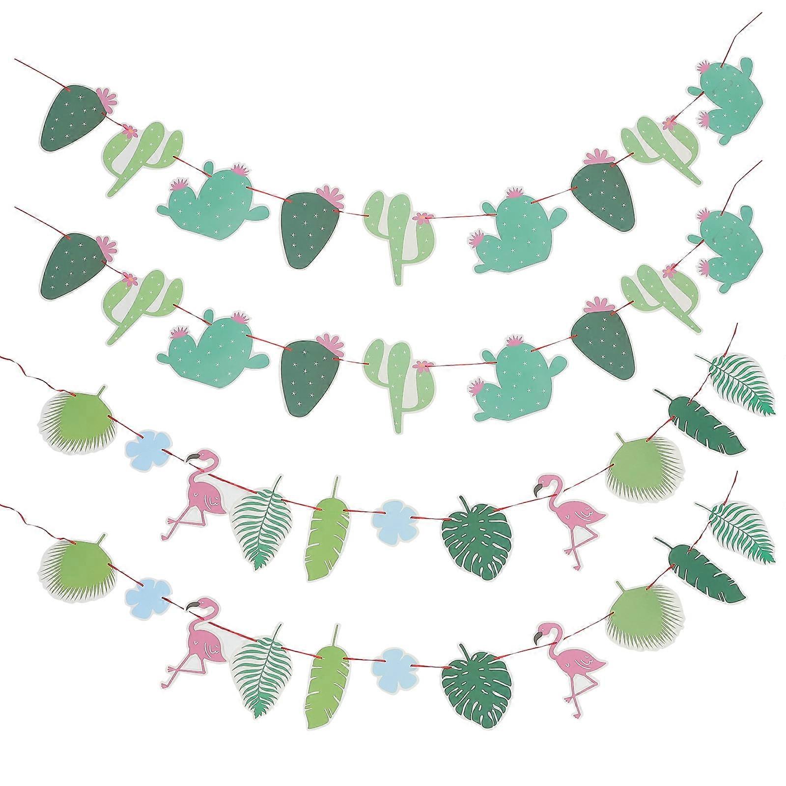 Mizh 4pcs Hawaiian Cactus Themed Banner Hawaiian Decorative Banner Cartoon Hawaiian Party Banner