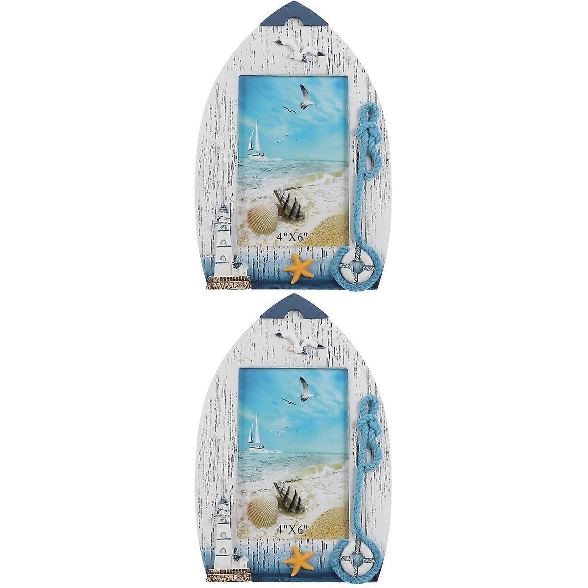 2pcs Beach Themed Picture Frame Wooden Photo Frame Holder Decorative Nautical Style Photo Frame