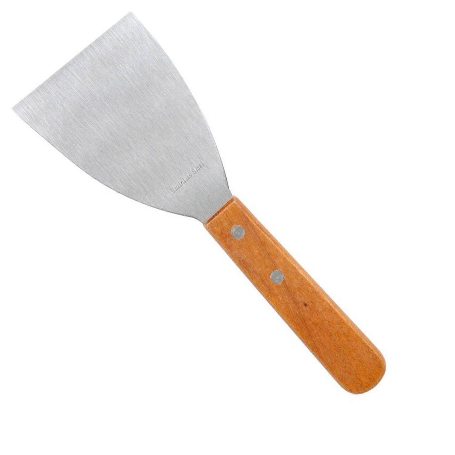 8-Inch Grill Scraper with 3-Inch Blade, Stainless Steel Slant Edge w Wood Handle